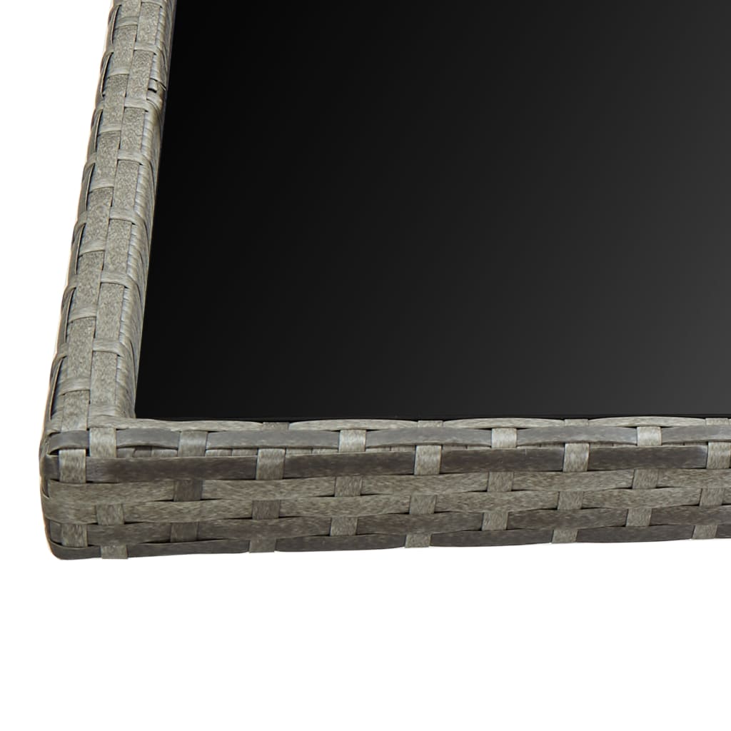 Αυτό το σετ τραπεζαρίας από ρατάν με κομψό σχεδιασμό, θα αποτελέσει μια εξαιρετική επιλογή για να γευματίζετε στον καθαρό αέρα ή να χαλαρώνετε στον κήπο. Οι σκελετοί από ατσάλι με ηλεκτροστατική βαφή πούδρας προσδίδουν στο τραπέζι, τις καρέκλες και τα σκαμπό αντοχή και σταθερότητα, ενώ χάρις στην ελαφριά κατασκευή τους, όλα τα έπιπλα μετακινούνται εύκολα. Χάρις στο αδιάβροχο ρατάν πολυαιθυλενίου με αντίσταση στις καιρικές συνθήκες, η τραπεζαρία καθαρίζεται εύκολα. Η γυάλινη επιφάνεια καθαρίζεται επίσης εύκολα με ένα νωπό πανί.