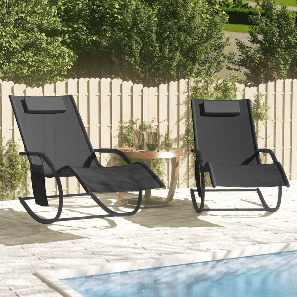 Κουνιστές Ξαπλώστρες 2 τεμ. Μαύρες από Ατσάλι / Textilene
