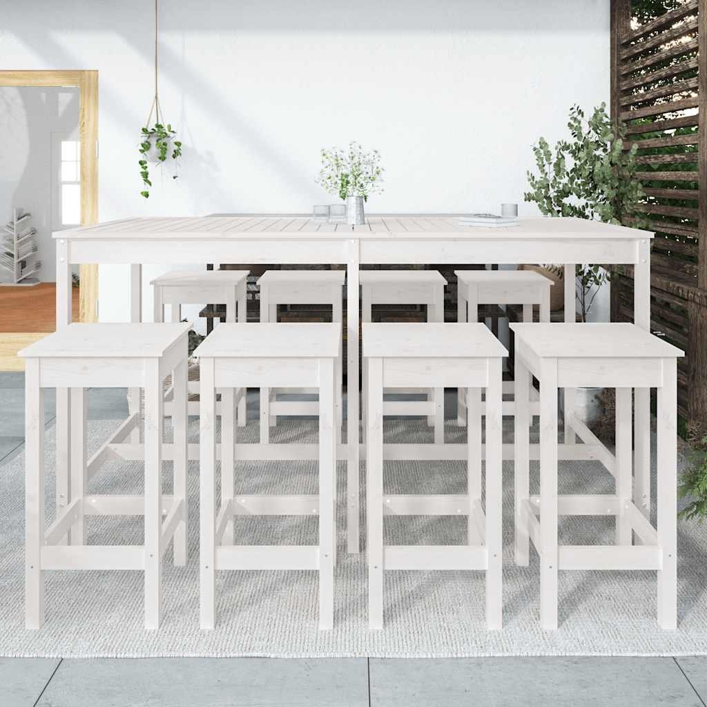 Έπιπλα Μπαρ Κήπου Σετ 9 Τεμαχίων Λευκό από Μασίφ Ξύλο Πεύκου