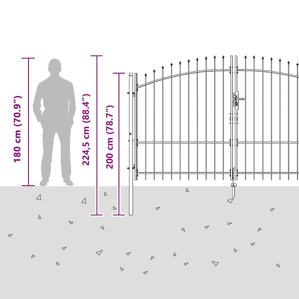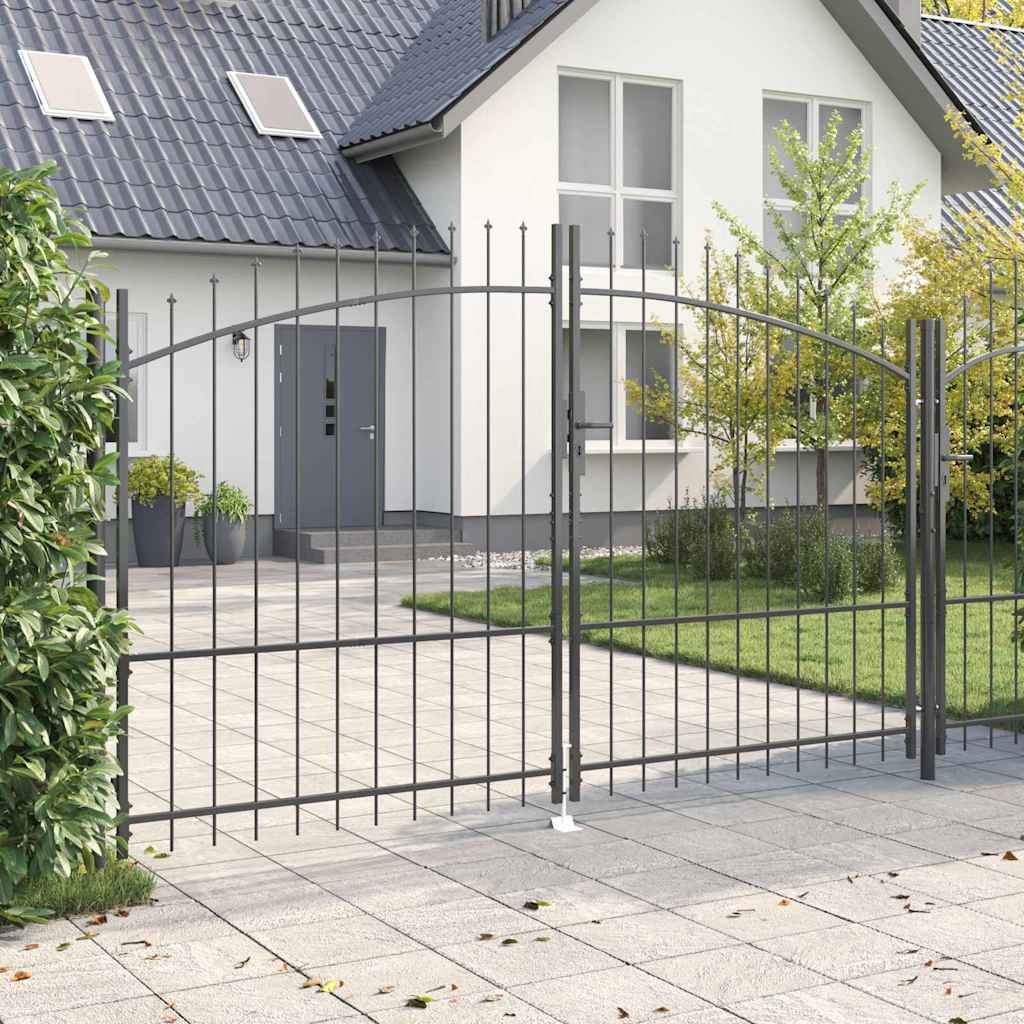 Η διπλή πόρτα με αιχμές είναι μια καλή προσθήκη στα εξωτερικά σας φράγματα, συνδυάζει αντοχή και στυλ. Φτιαγμένη για να ταιριάζει με τη σύγχρονη αισθητική, δίνει μια αίσθηση κομψότητας και ασφάλειας σε κήπους και ταράτσες. Ο μοντέρνος σχεδιασμός της, με καθαρές γραμμές και λιτότητα, την καθιστά ιδανική για κάθε σύγχρονο χώρο. Το γκρι χρώμα της προσφέρει ουδέτερη αλλά εντυπωσιακή εμφάνιση, κατάλληλη για διάφορες εξωτερικές διακοσμήσεις. Όχι μόνο ενισχύει την ασφάλεια, αλλά δημιουργεί και μία κομψή δήλωση σε κάθε χώρο.