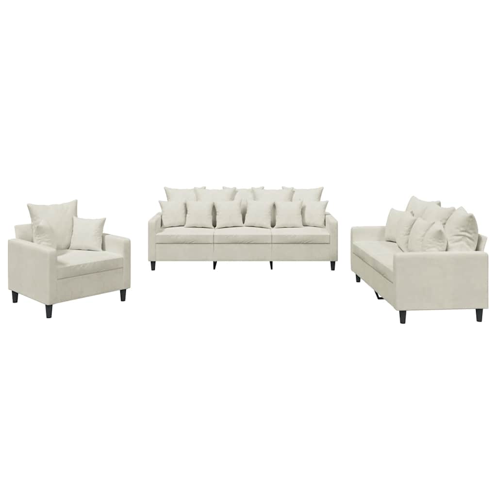 Πολυθρόνες Σετ 3 Τεμαχίων Κρεμ από Βελούδο με Μαξιλάρια