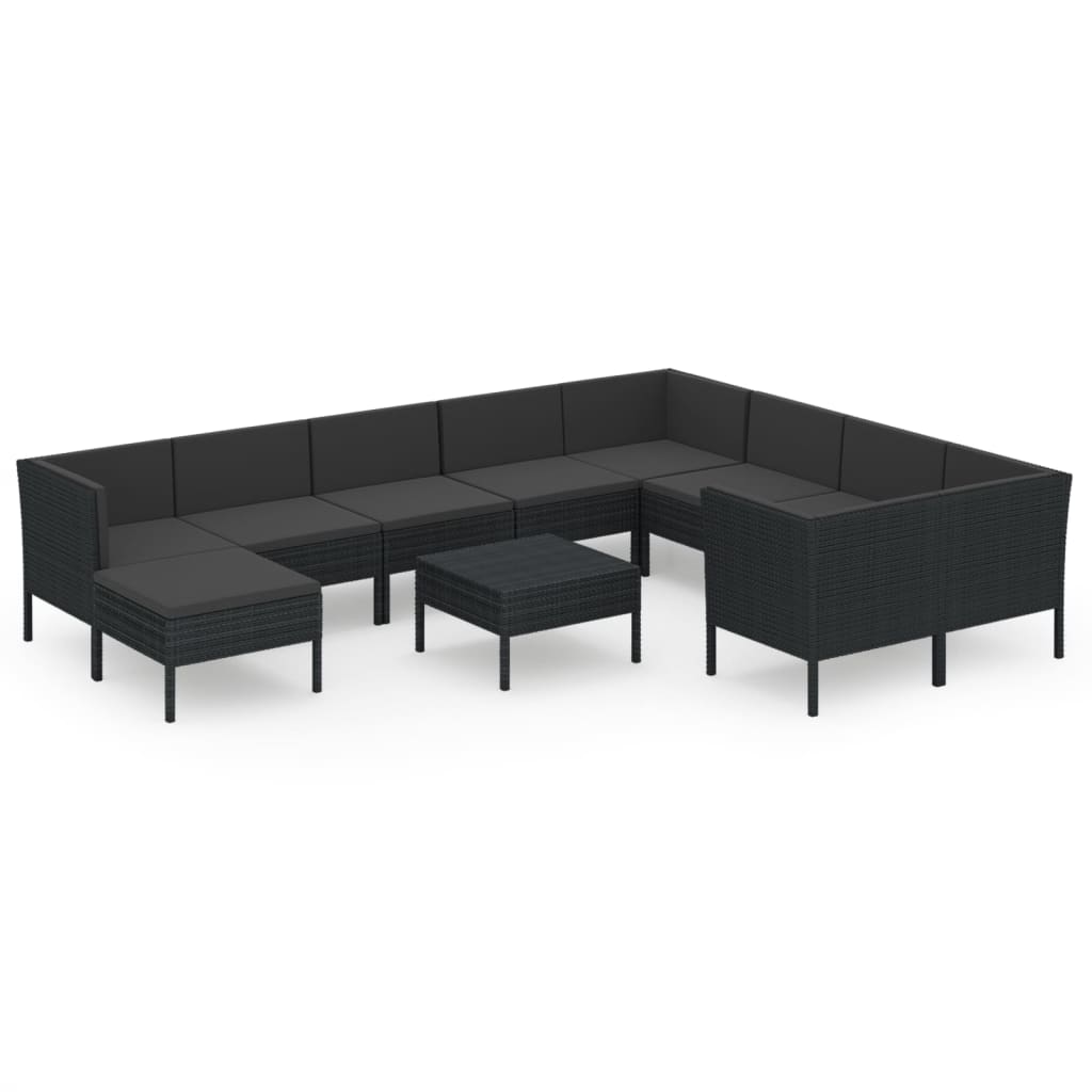 Σαλόνι Κήπου 11 Τεμαχίων Μαύρο από Συνθετικό Ρατάν με Μαξιλάρια