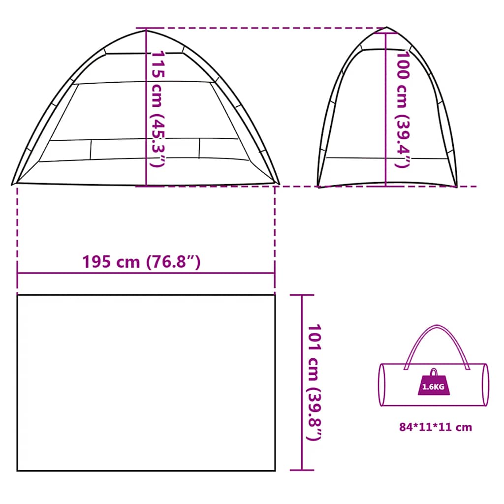 - Εξωτερικές διαστάσεις σκηνής: 195 x 101 x 115 εκ. (Μ x Π x Υ)