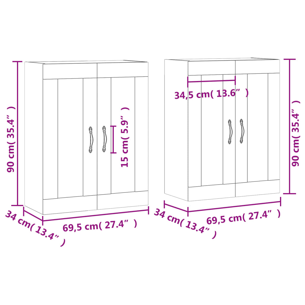 - Διαστάσεις (έκαστο): 69,5 x 34 x 90 εκ. (Π x Β x Υ)