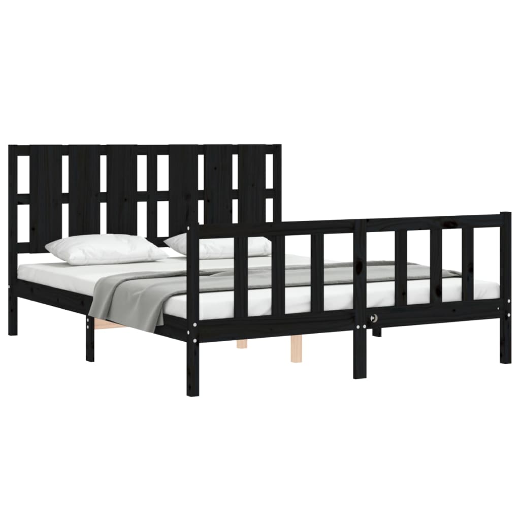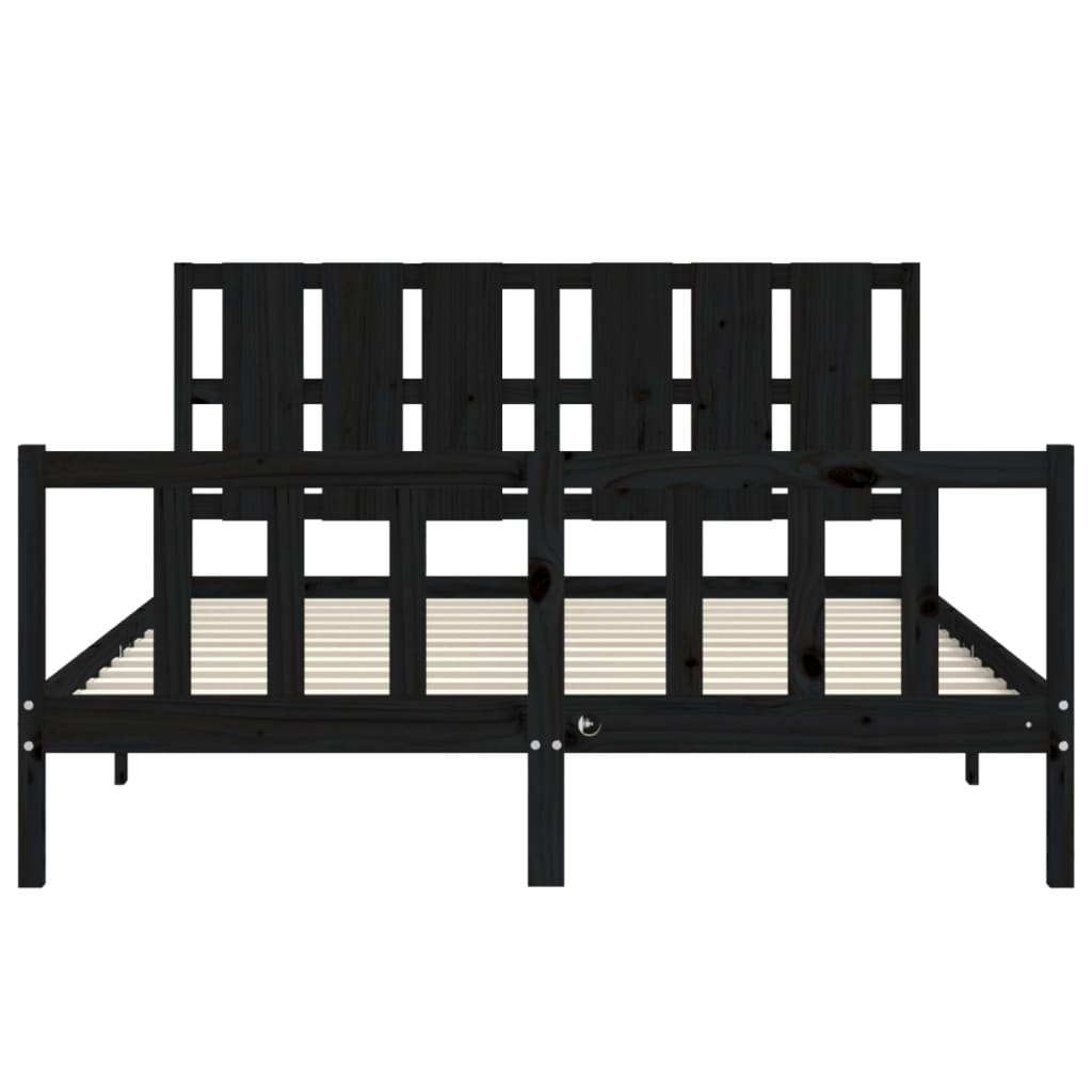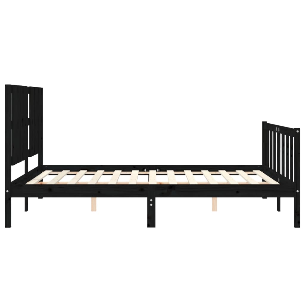 Πλαίσιο Κρεβατιού με Κεφαλάρι Μαύρο Μασίφ Ξύλο King Size