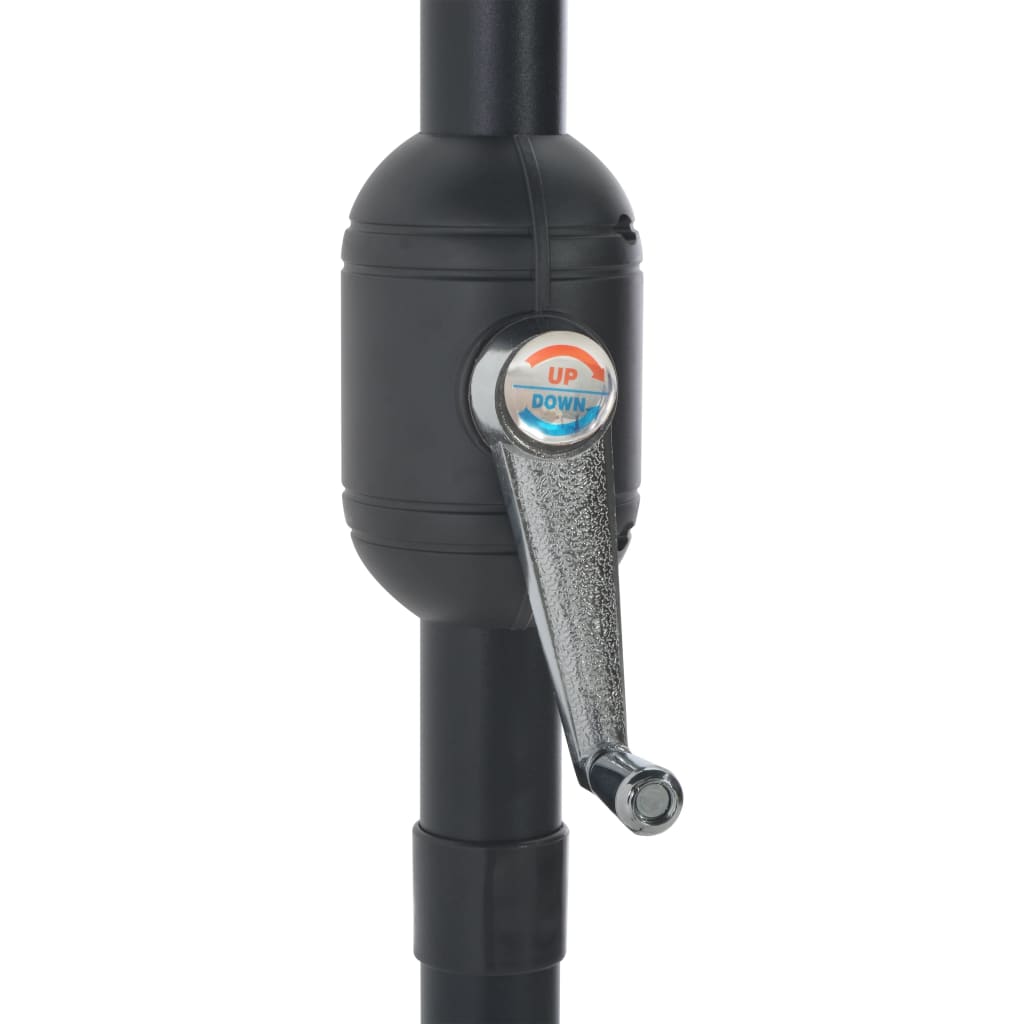 Κατασκευασμένο από πολυεστέρα με αντίσταση στο ξεθώριασμα, το κάλυμμα της ομπρέλας σάς παρέχει βέλτιστη προστασία από την υπεριώδη ακτινοβολία και καθαρίζεται εύκολα. Με τον διαμέτρου 38 χιλ. ιστό της, μπορεί να τοποθετηθεί στη βάση σας ή στη μέση τραπεζιών με οπές. Ο ημικυκλικός σχεδιασμός της, ενισχύει τη μοναδική γοητεία της ομπρέλας. Ο ισχυρός αλουμινένιος ιστός και οι 5 στιβαρές ακτίνες από ατσάλι, εξασφαλίζουν στην ομπρέλα εξαιρετική σταθερότητα και ανθεκτικότητα. Η ομπρέλα κήπου μπορεί να ανοίξει και να κλείσει με ευκολία, χάρις στον μηχανισμό με μανιβέλα.