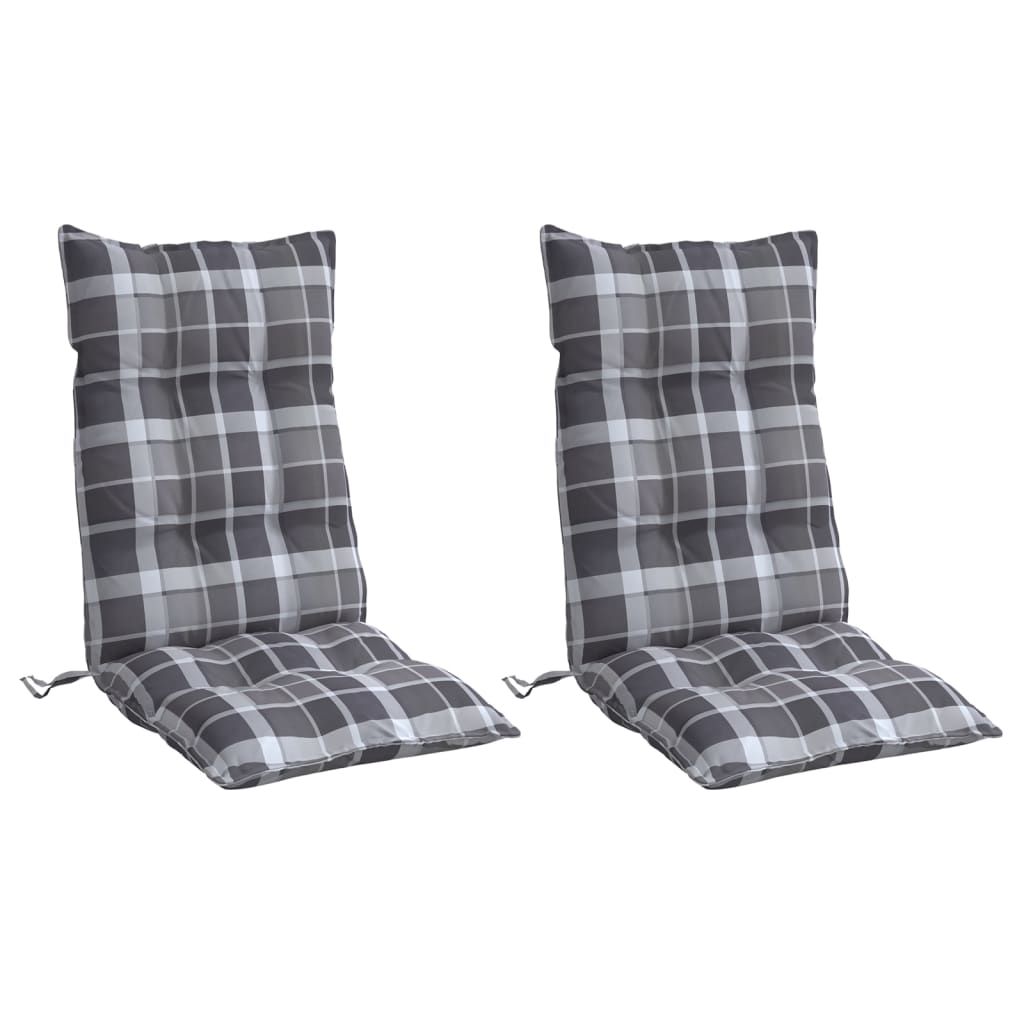 Μαξιλάρια Καρέκλας με Ψηλή Πλάτη 2 τεμ. Γκρι Καρό Ύφασμα Oxford
