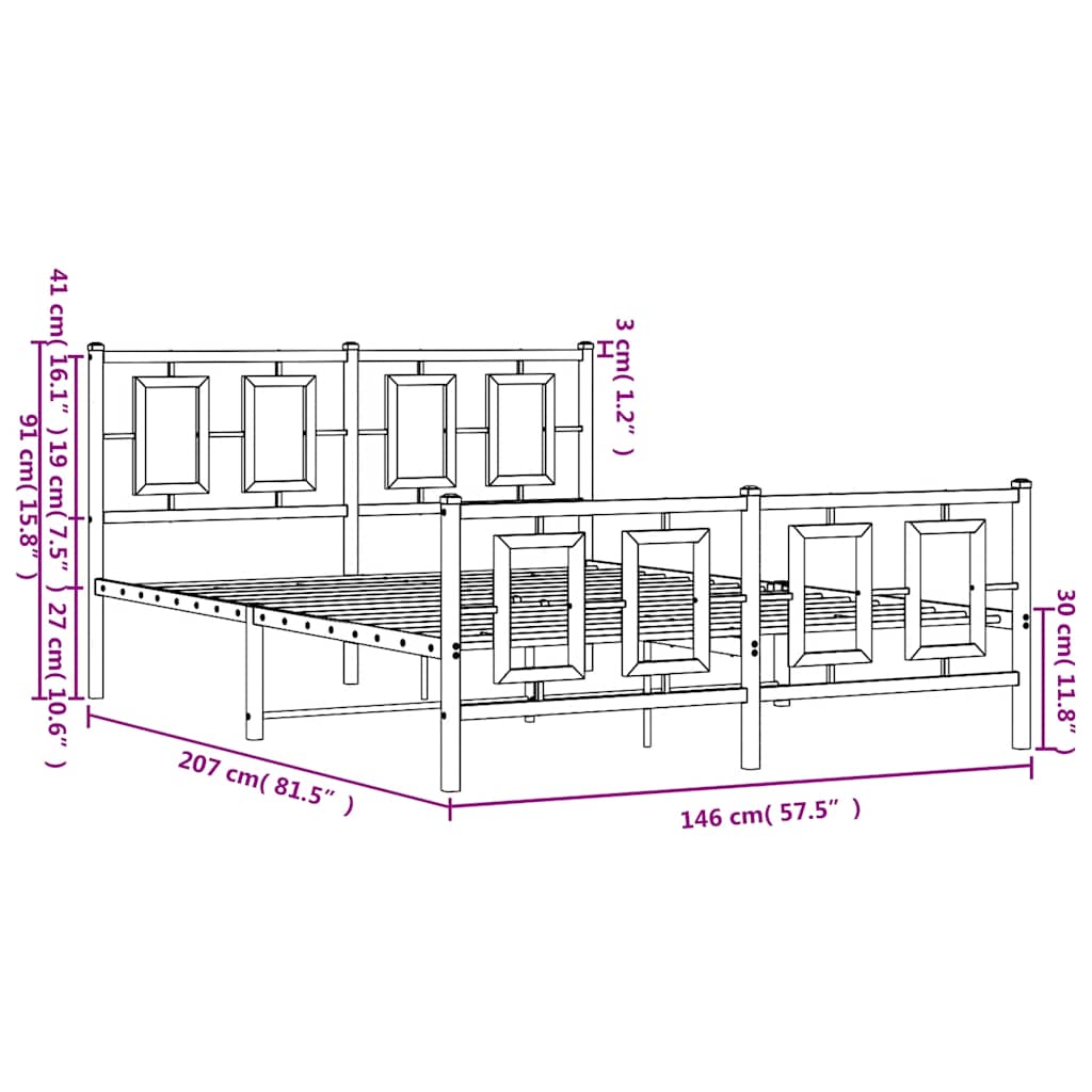 Πλαίσιο Κρεβατιού με Κεφαλάρι&Ποδαρικό Λευκό 140x200εκ. Μέταλλο