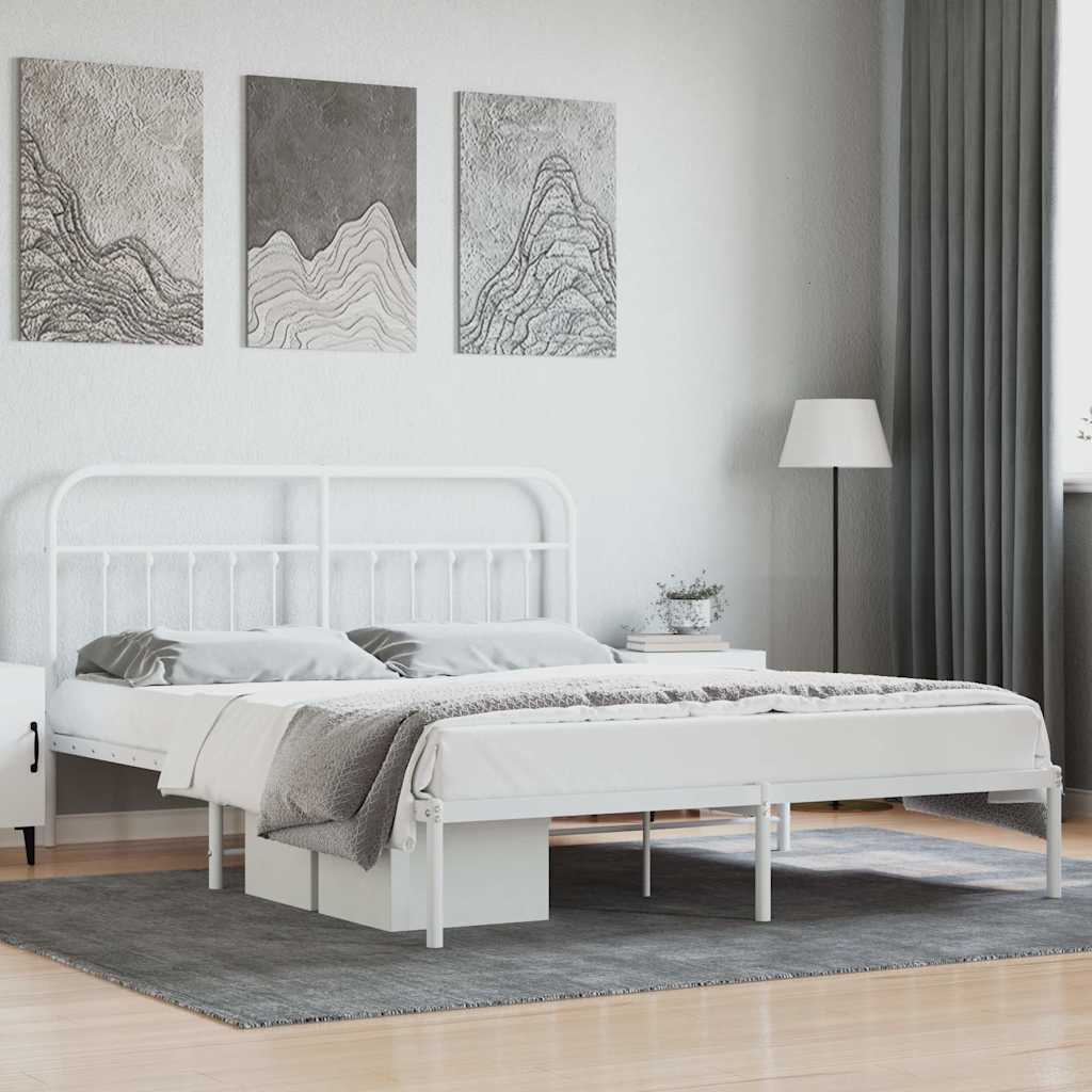 Πλαίσιο Κρεβατιού με Κεφαλάρι Λευκό 180x200 εκ. Μεταλλικό