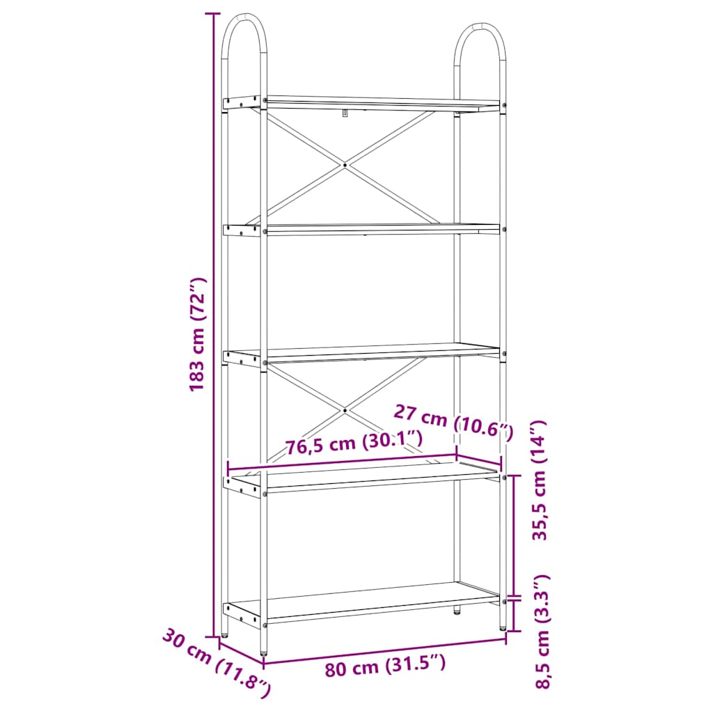 Ράφι Βιβλίων Καπνιστό Δρύς 80 x 30 x 183 εκ Επεξεργασμένο ξύλο