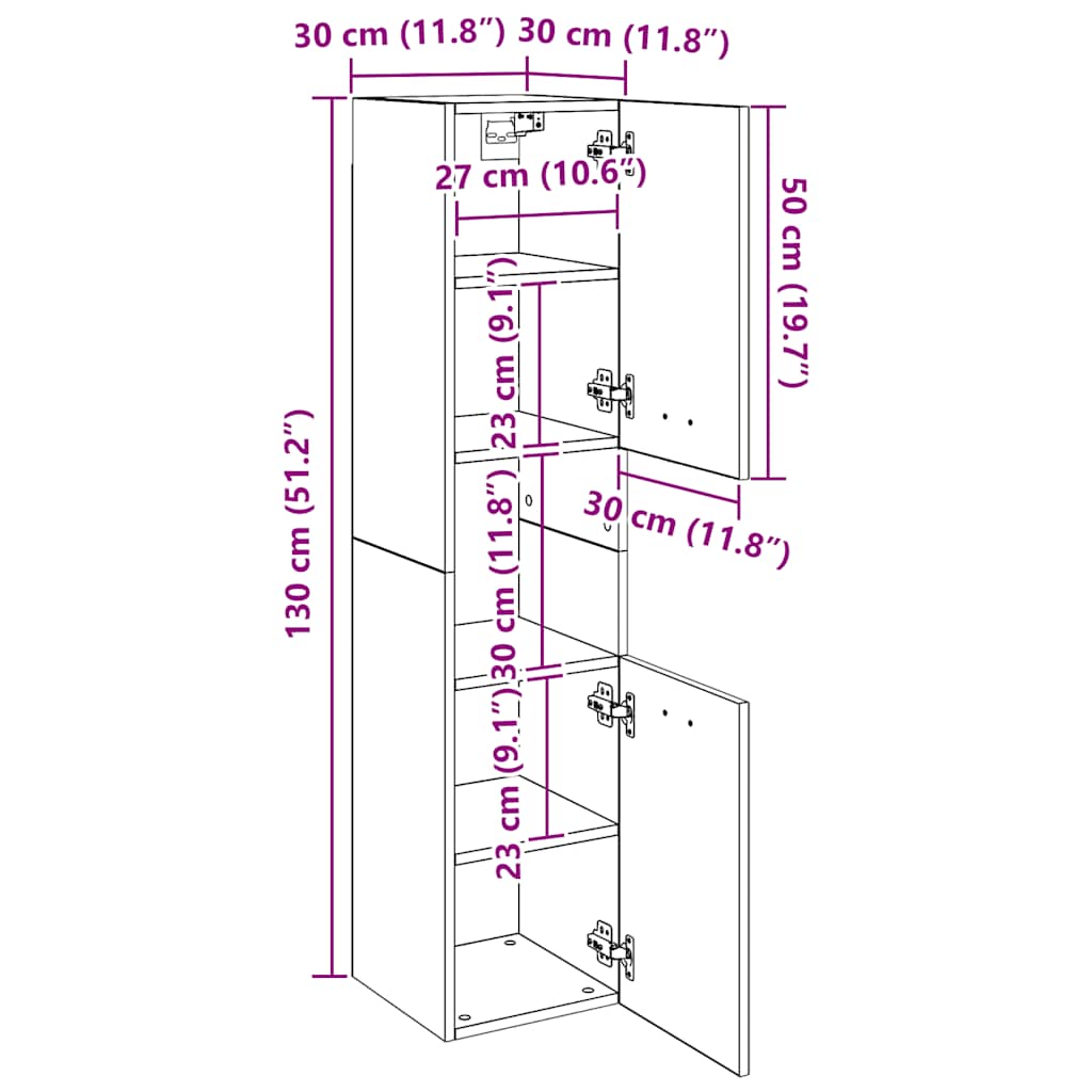 Ντουλάπι Μπάνιου Καπνιστή Δρυς 30x30x130 εκ. Επεξεργασμένο Ξύλο