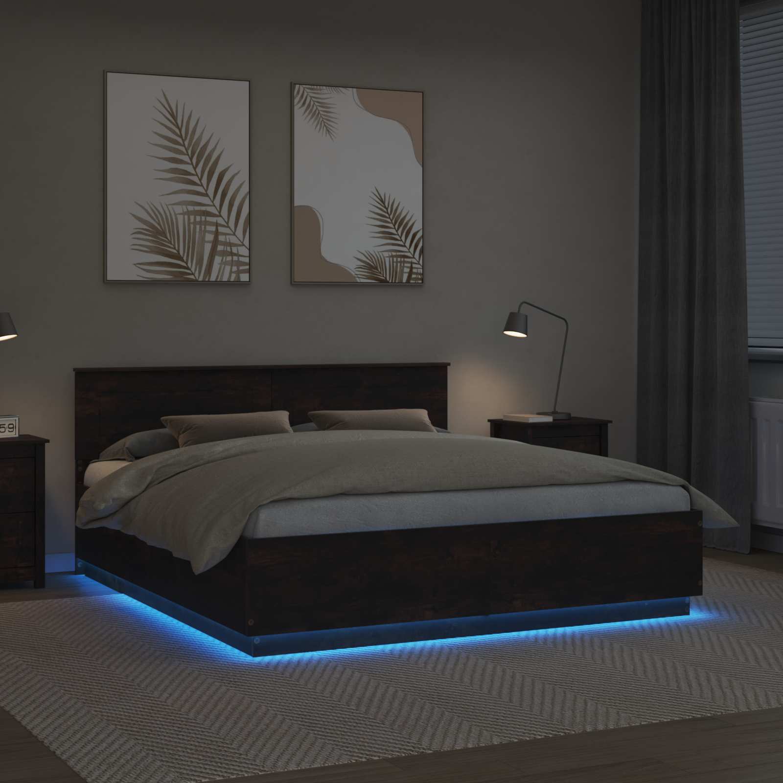 Σκελετός Κρεβατιού με κεφαλάρι Καπνιστό Δρύς 200 x 200 cm