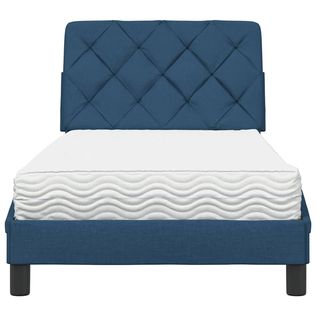 Κρεβάτι με Στρώμα Μπλε 90x200 εκ.Υφασμάτινο