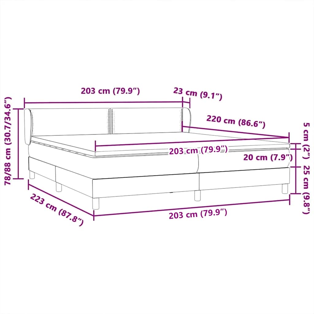 Box Spring Κρεβάτι με στρώματα Σκούρο μπλε 200x220 cm Βελούδινο
