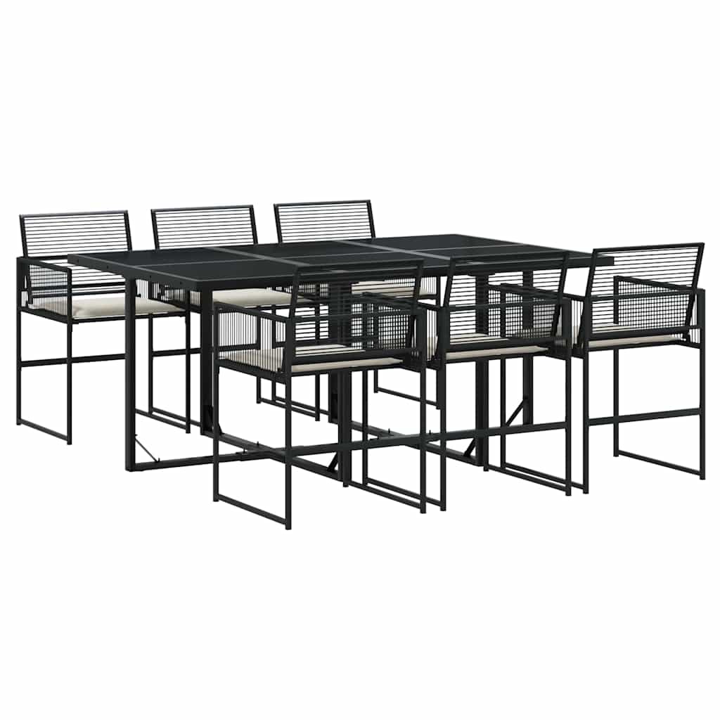 Σετ Τραπεζαρίας Κήπου 7 Τεμ. Μαύρο Συνθετικό Ρατάν με Μαξιλάρια