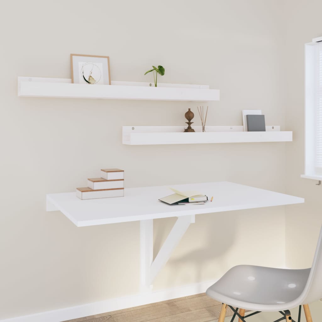 Ράφια Τοίχου 2 τεμ. Λευκό 110x12x9 εκ. από Μασίφ Ξύλο Πεύκου