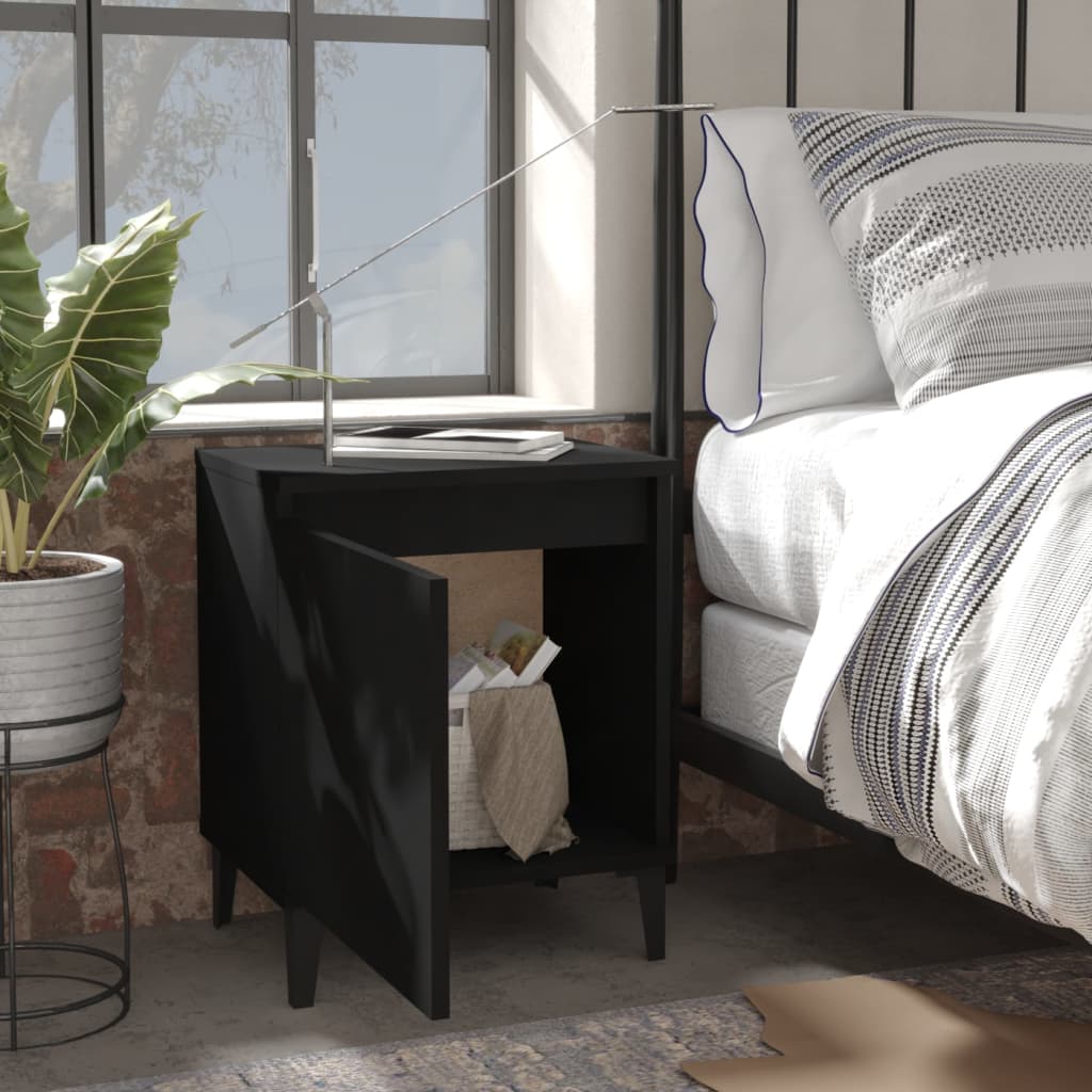 Κομοδίνα Μαύρα 40 x 30 x 50 εκ. με Μεταλλικά Πόδια
