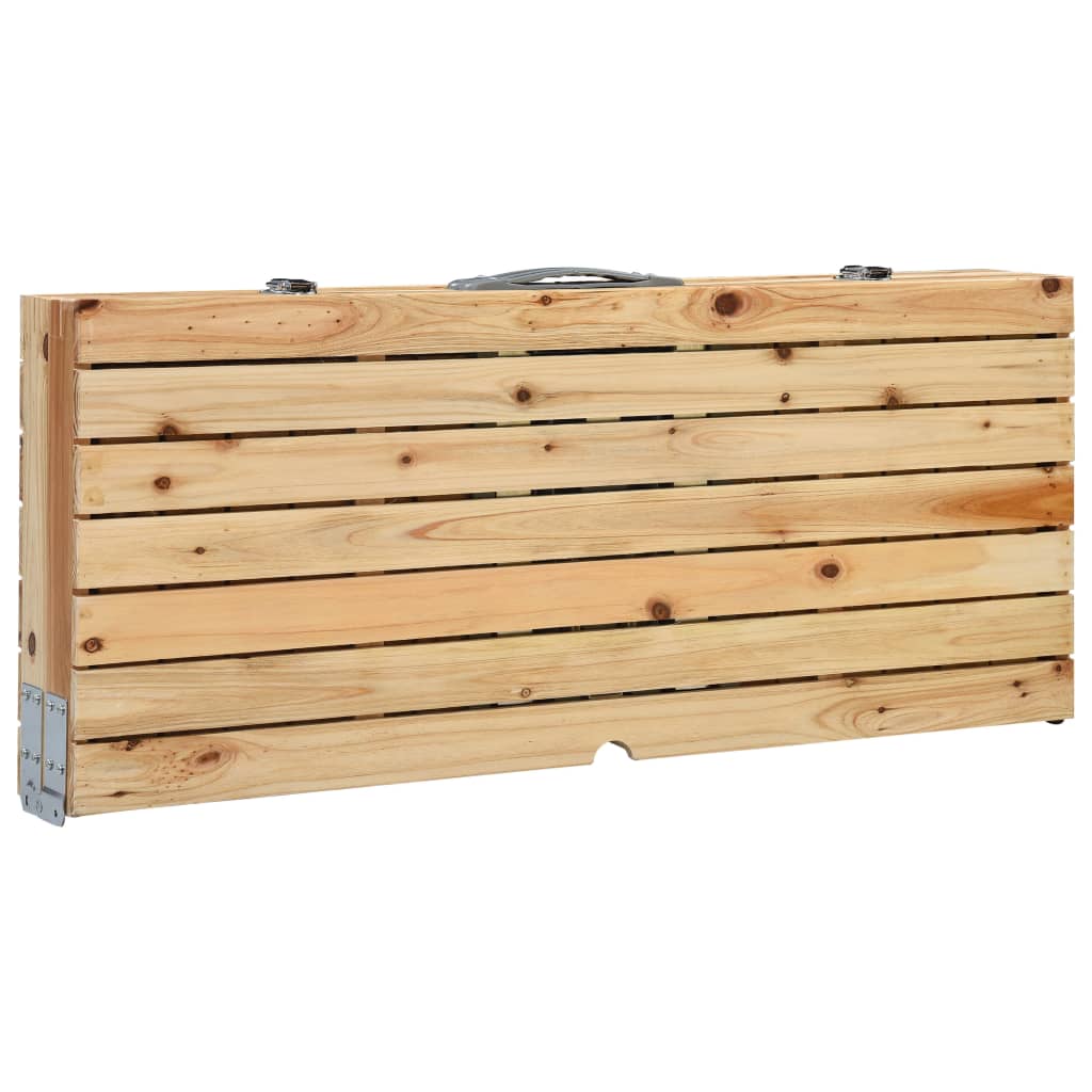 Η επιφάνεια από ξύλο ελάτης ενισχύει τη φυσική γοητεία του, ενώ ο σκελετός από υψηλής ποιότητας ατσάλι και αλουμίνιο εγγυάται τη στιβαρότητα και την αντοχή του. Χάρις στον πτυσσόμενο σχεδιασμό, αυτό το τραπέζι κάμπινγκ με καθίσματα μπορεί να αναδιπλωθεί σε μέγεθος βαλίτσας, ώστε να μεταφέρεται εύκολα και να αποθηκεύεται γρήγορα όταν δε χρησιμοποιείται. Επιπλέον, η επιφάνεια του τραπεζιού διαθέτει οπή που σας επιτρέπει να τοποθετήσετε μία ομπρέλα με ευκολία.