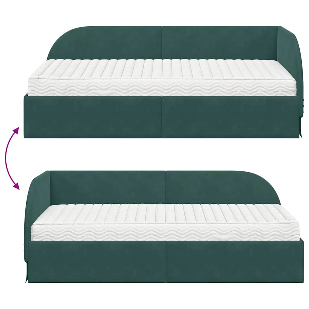 Κρεβάτι γωνίας με στρώμα με κεφαλάρι 2 pcs Πράσινο Βελούδο