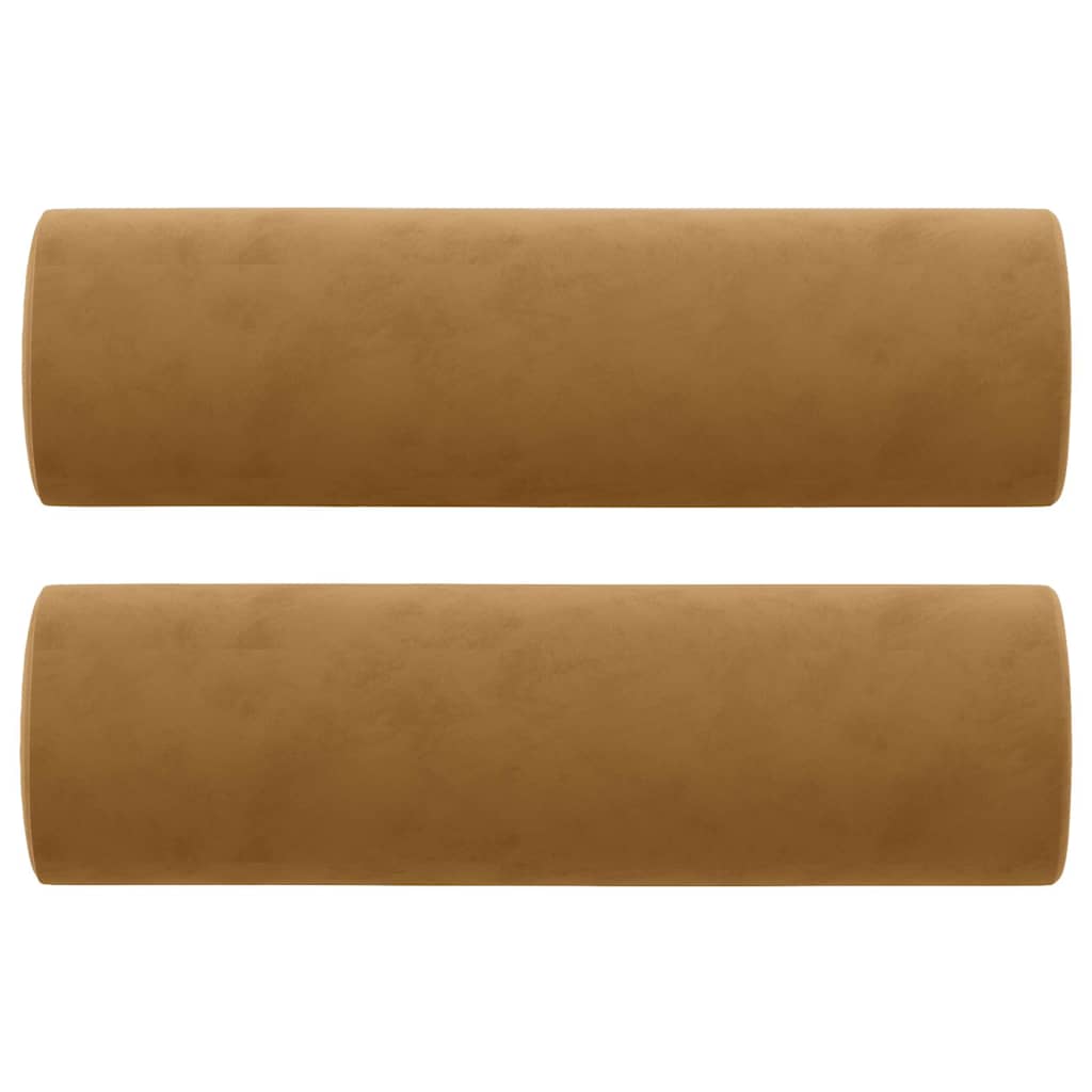 Καναπές Τριθέσιος Καφέ 180 εκ. Βελούδινος με Μαξιλάρια