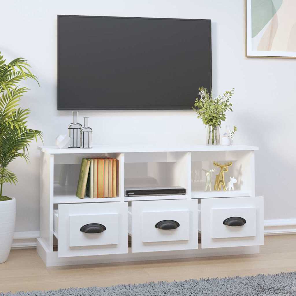 Έπιπλο Τηλεόρασης Γυαλ. Λευκό 100x35x50 εκ. Επεξεργασμένο Ξύλο