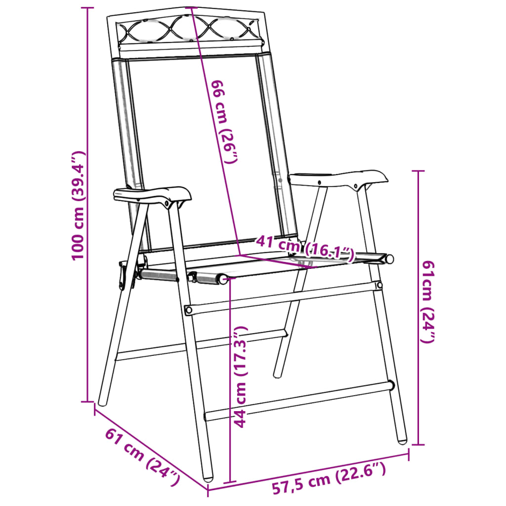 Καρέκλες Κήπου Πτυσσόμενες 8 τεμ. Γκρι Μελανζέ Ατσάλι/Textilene