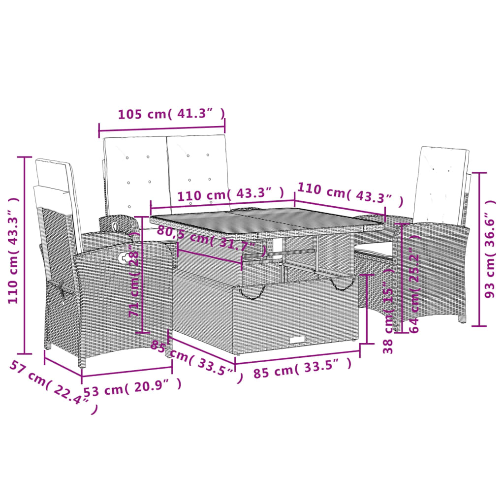 Σετ Τραπεζαρίας Κήπου με Μαξιλάρια 4 τεμ. Μαύρο από Συνθ. Ρατάν