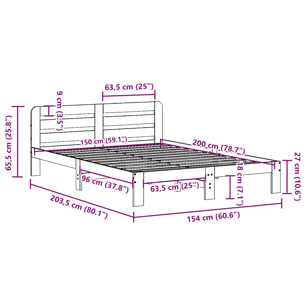 Σκελετός Κρεβ. Χωρίς Στρώμα Καφέ Κεριού 150x200 εκ Μασίφ Πεύκο