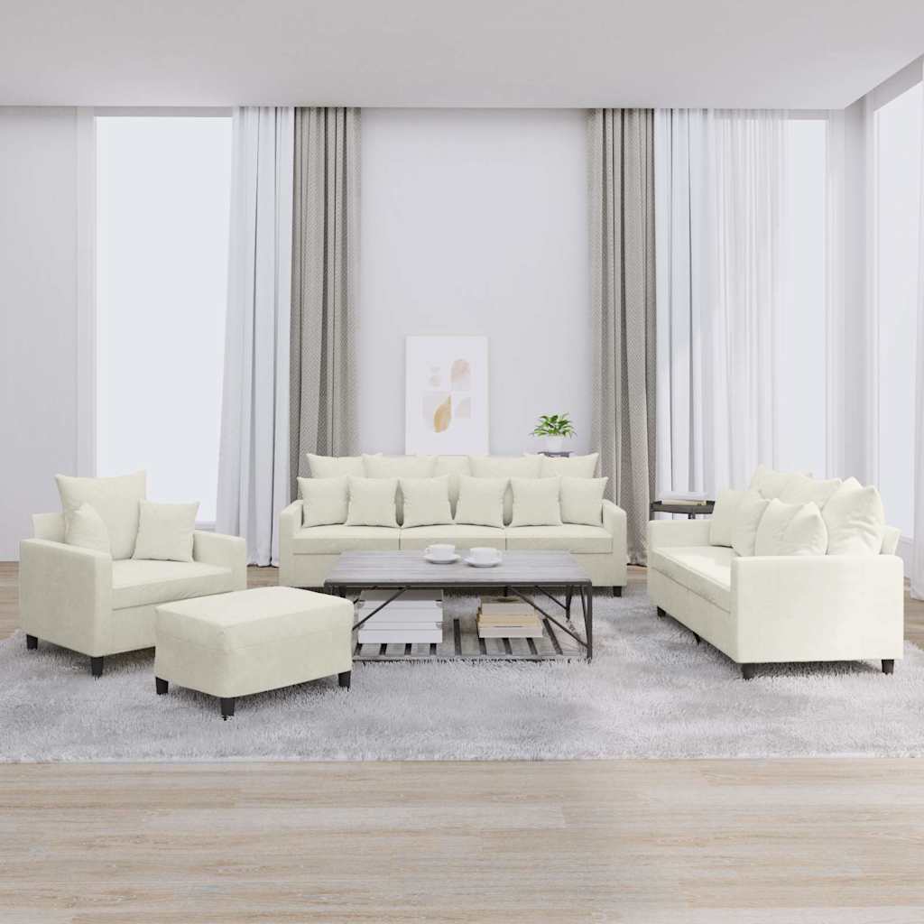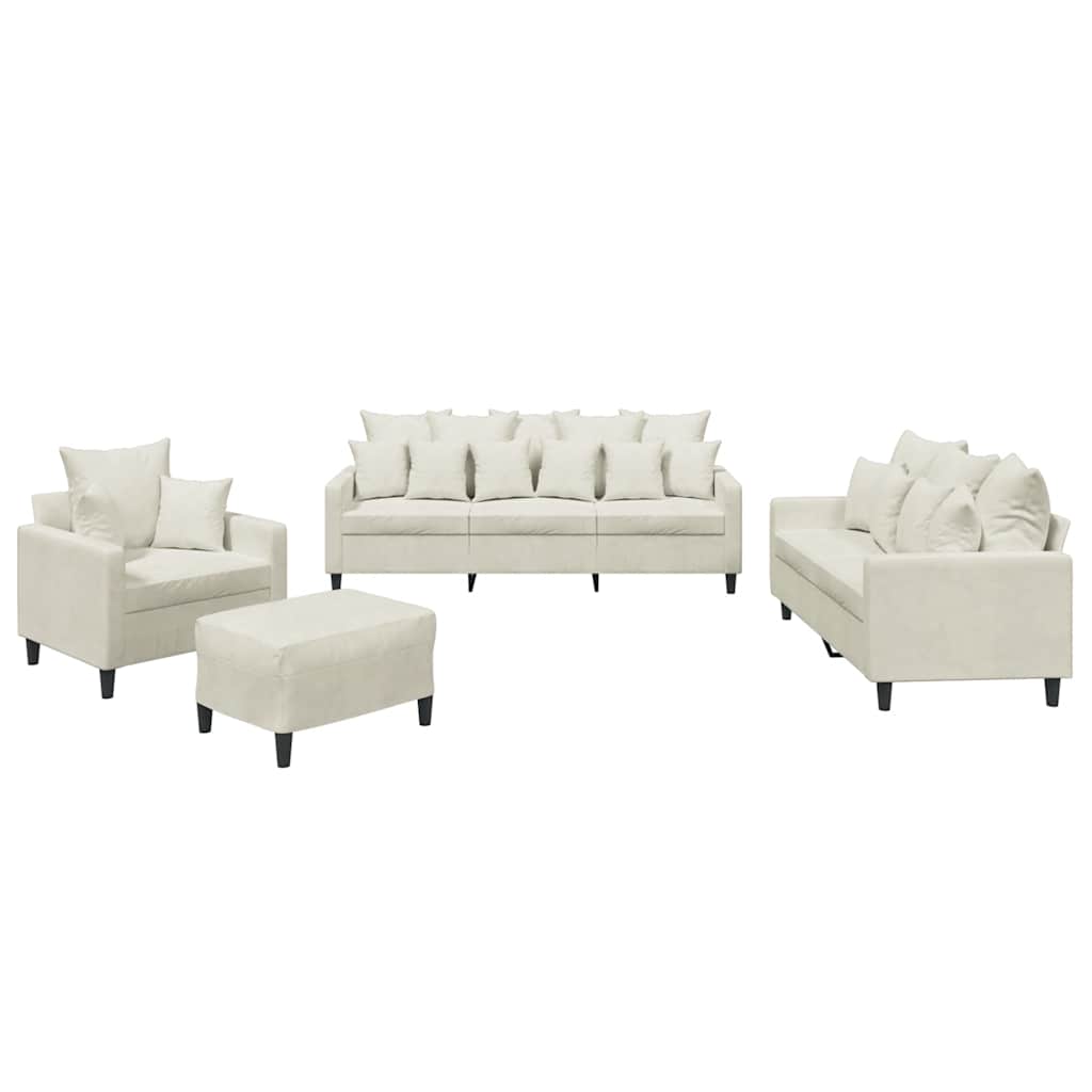Πολυθρόνες Σετ 4 Τεμαχίων Κρεμ από Βελούδο με Μαξιλάρια