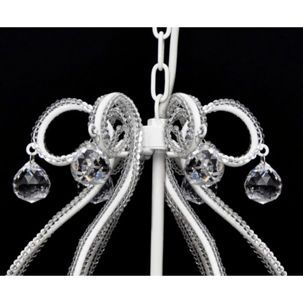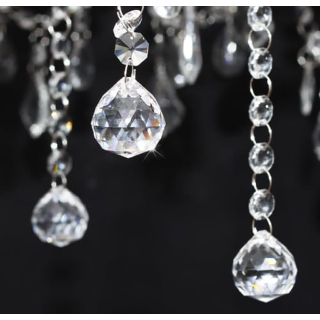 Ο πολυέλαιος διαθέτει ένα περίβλημα από μέταλλο και χρώμιο με 6 διαφορετικές φλόγες. Κάθε φλόγα έχει δικό της καπέλο από ημιδιαφανές λευκό νήμα. Το μοντέρνο φωτιστικό έχει ένα βασιλικό κρυστάλλινο σχεδιασμό. Το υψηλής ποιότητας άχρωμο γυαλί δίνει πραγματική διαύγεια και λάμπει στο φως (ακόμα και από άλλες πηγές φωτός). Στο φάσμα θα δείτε ένα υπέροχο παιχνίδι χρωμάτων.Αυτός ο υπέροχος πολυέλαιος είναι σαγηνευτικός χάρις στις 6 πηγές φωτός και τα γυαλισμένα πρίσματά του που θα σας παρέχουν μια μαγική λάμψη και ένα θερμό φωτισμό. Πραγματικά θα τραβήξει την προσοχή σε οποιοδήποτε δωμάτιο και αν τοποθετηθεί και είναι ιδανικό για ιδιωτικούς και βιομηχανικούς χώρους.