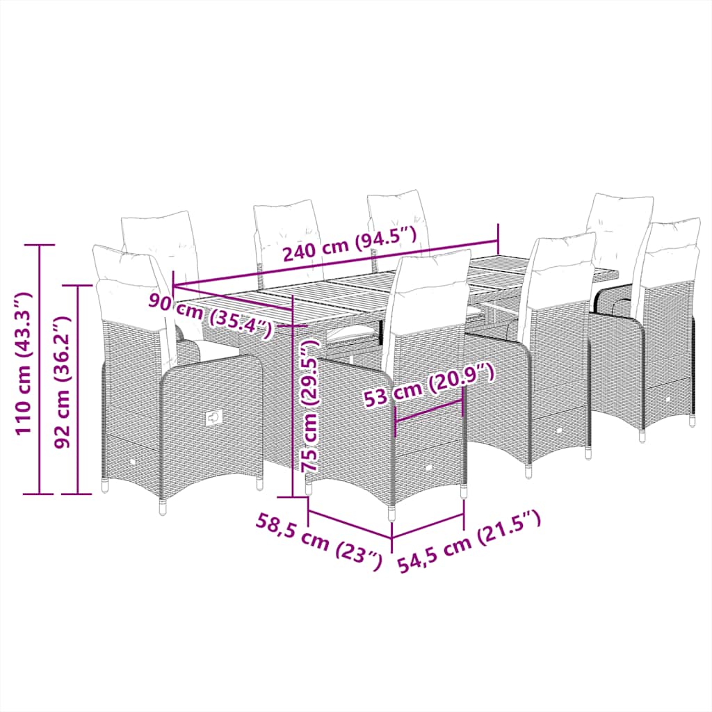 Σετ Επίπλων Bistro Κήπου 9 τεμ Μαύρο Συνθετ. Ρατάν με Μαξιλάρια