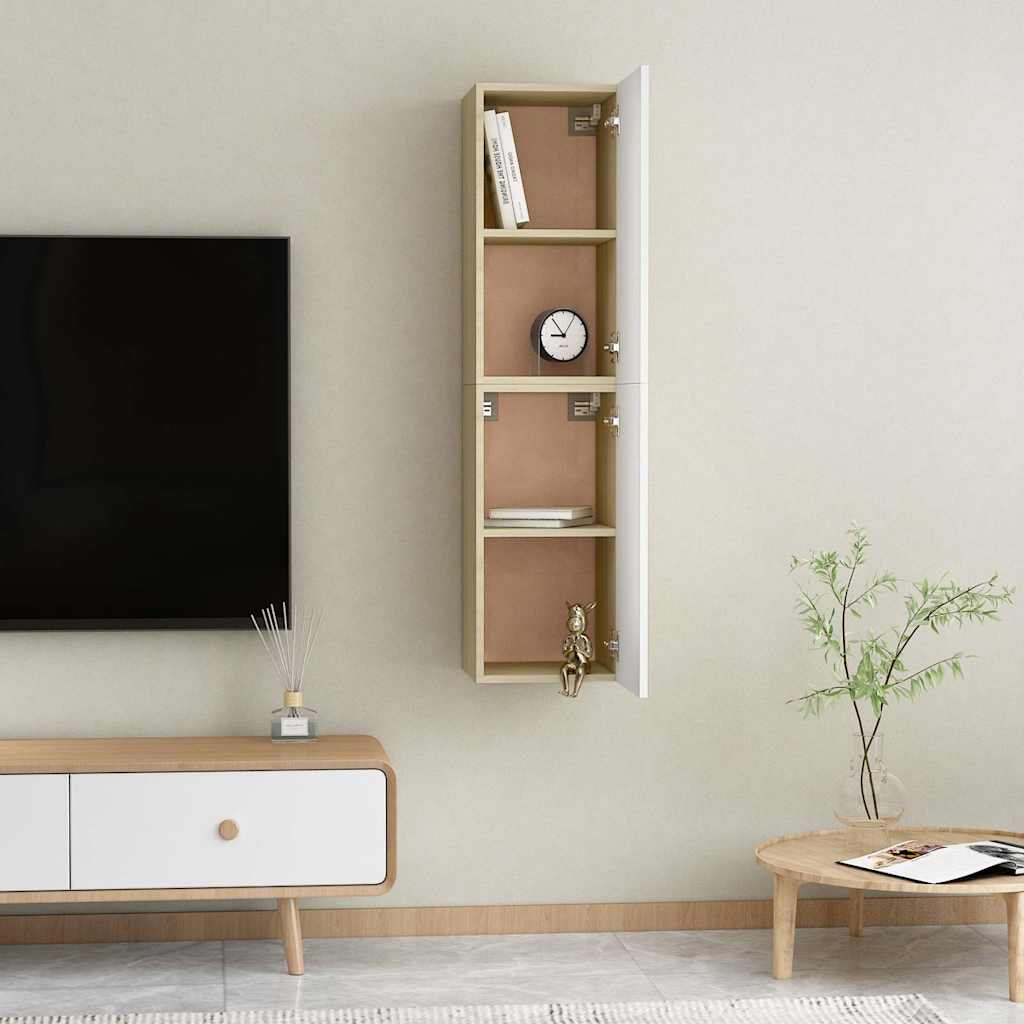 Έπιπλα Τηλεόρασης 2 τεμ. Λευκά & Δρυς 30,5x30x60εκ. Επεξ. Ξύλο