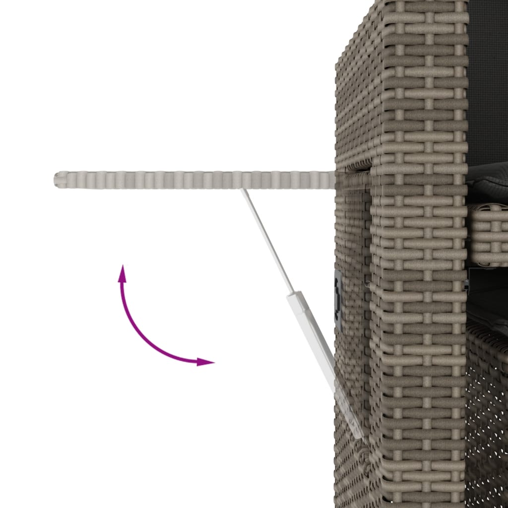 Πάγκος Κήπου Ανακλινόμενος Γκρι Συνθετικό Ρατάν με Μαξιλάρια