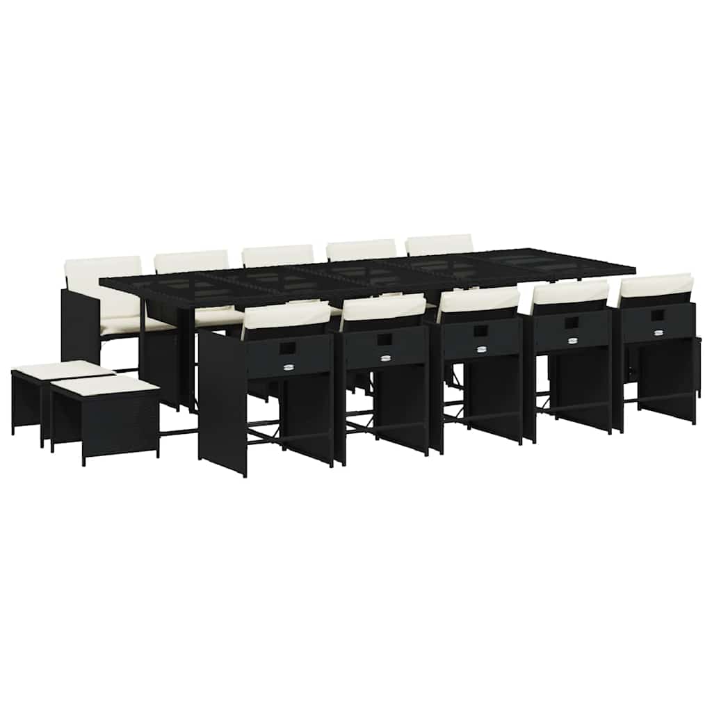 Σετ Τραπεζαρίας Κήπου 15 τεμ Μαύρο από Συνθ. Ρατάν με Μαξιλάρια