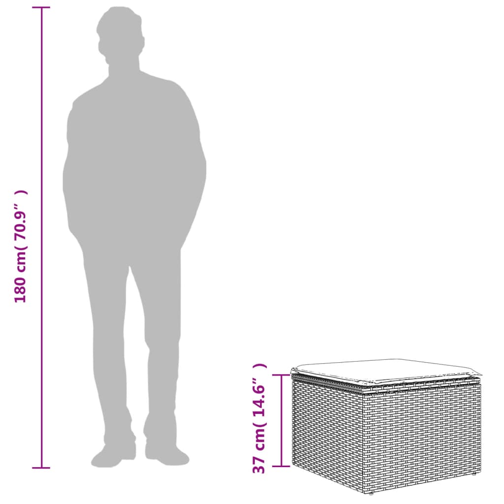 Υποπόδιο Κήπου Μπεζ 55x55x37 εκ. Συνθετικό Ρατάν με Μαξιλάρι