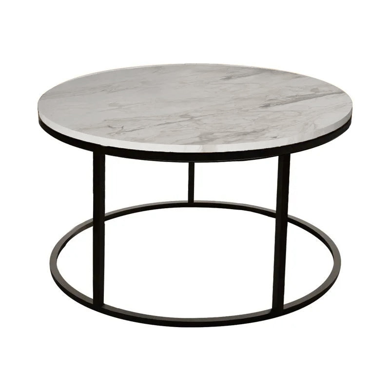 Τραπέζι σαλονιού Sikele λευκή όψη μαρμάρου και μαύρα μεταλλικά πόδια Φ60x40εκ