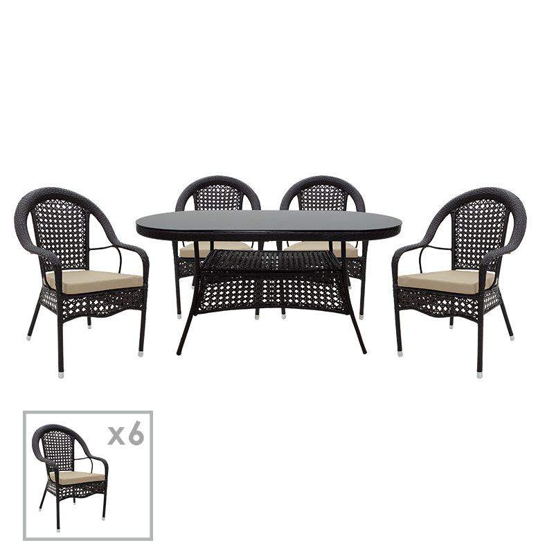 Τραπεζαρία Cellin σετ 7τεμ μέταλλο-pe rattan καφέ