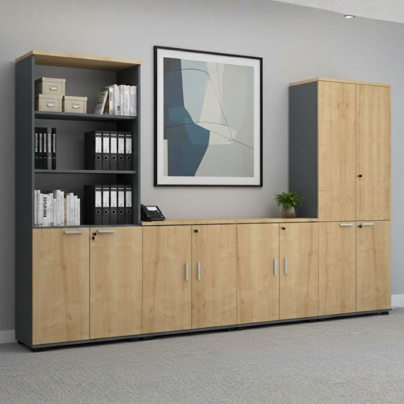 Ντουλάπι γραφείου με κλειδαριά επαγγελματικό Venturo χρώμα ανθρακί - φυσικό οξιάς 80x40x80εκ.