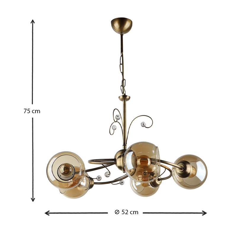 Φωτιστικό οροφής Zara E27 μεταλλικό πεντάφωτο χρώμα μπρονζέ Φ52x75εκ.