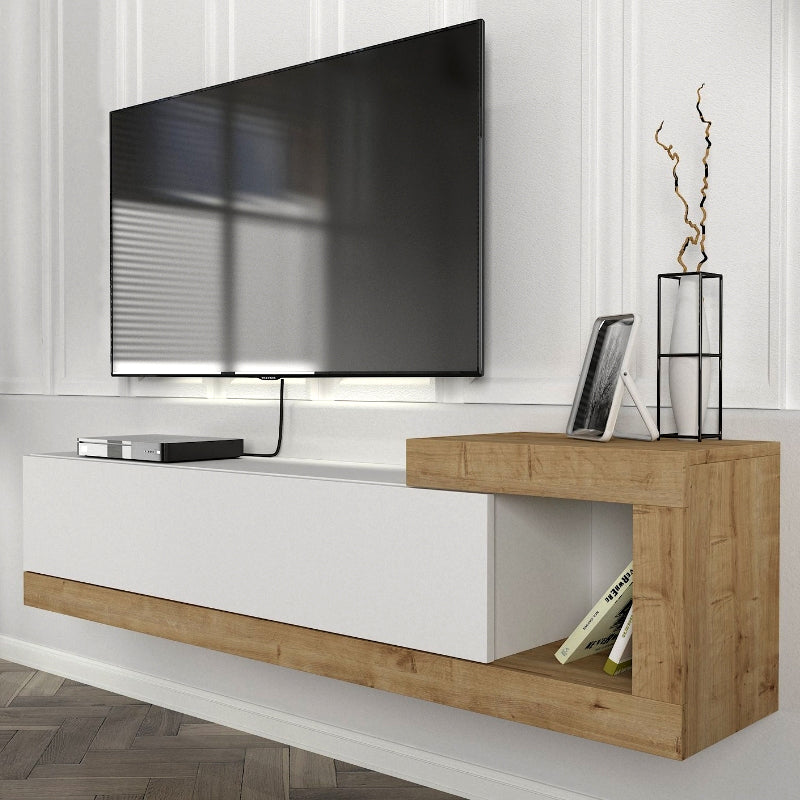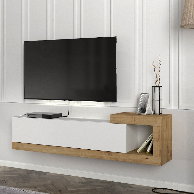 Έπιπλο τηλεόρασης επιτοίχιο Volare χρώμα λευκό - sapphire oak 150x29,6x38,6εκ.