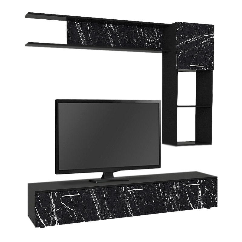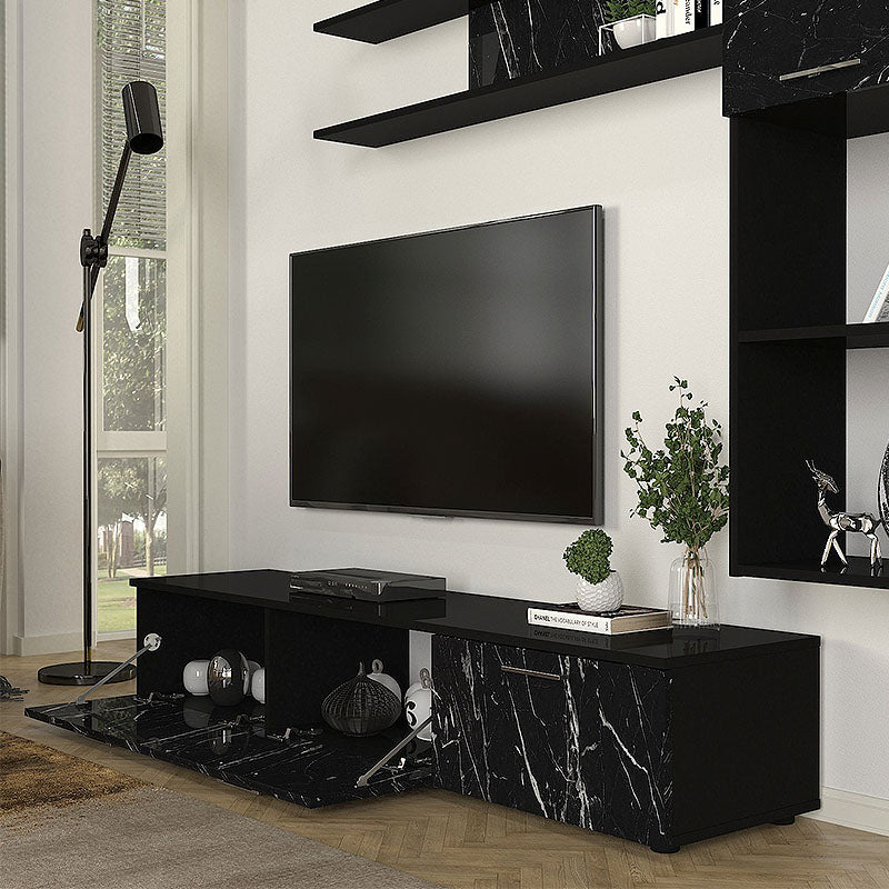 Σύνθεση τηλεόρασης Darcy χρώμα μαύρο εφέ μαρμάρου - μαύρο 180x40x33εκ.