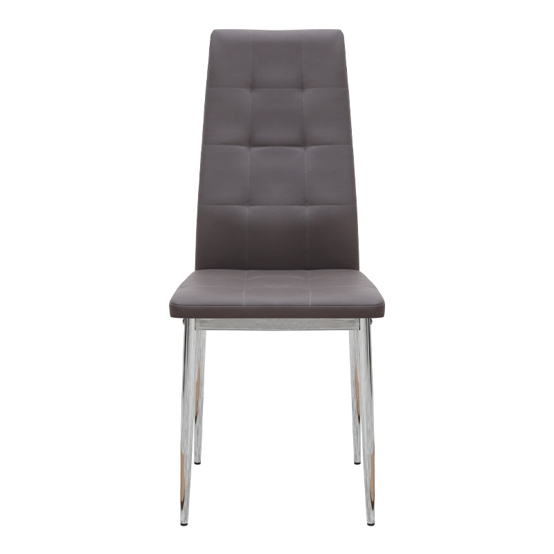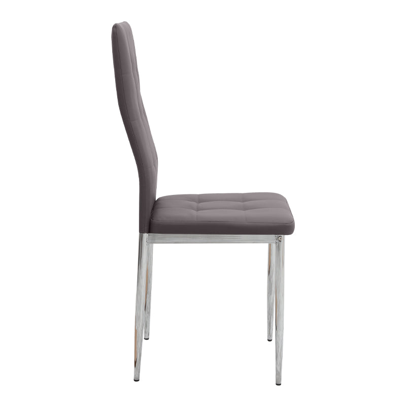 Η καρέκλα Rosa διαθέτει κάθισμα από τεχνόδερμα PU σε καφέ χρώμα και μεταλλικά πόδια χρωμίου, προσφέροντας αντοχή και πρακτικότητα στην καθημερινή χρήση. Ο λιτός, μοντέρνος σχεδιασμός της την κάνει κατάλληλη για κάθε τύπο τραπεζαρίας, οικιακής ή επαγγελματικής, προσφέροντας μια διακριτική αλλά κομψή παρουσία στον χώρο.