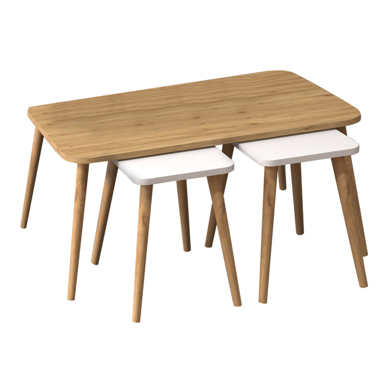 Τραπεζάκι σαλονιού σετ 3 τμχ Oliva χρώμα oak - λευκό