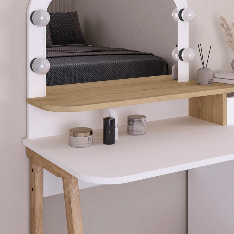 Η μοναδική τουαλέτα με καθρέπτη Avien, αποτελεί ένα ιδανικό έπιπλο για να προσθέσετε μια πινελιά στυλ και πρακτικότητας στον χώρο σας. Έχει σχεδιαστεί για να ταιριάζει τέλεια σε μικρά δωμάτια ενώ προσφέρει άφθονο χώρο αποθήκευσης.