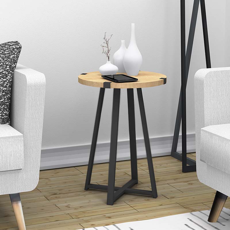 Βοηθητικό τραπεζάκι Pedro μεταλλικό - μελαμίνης χρώμα φυσικό οξιάς - ανθρακί 44x44x58εκ.