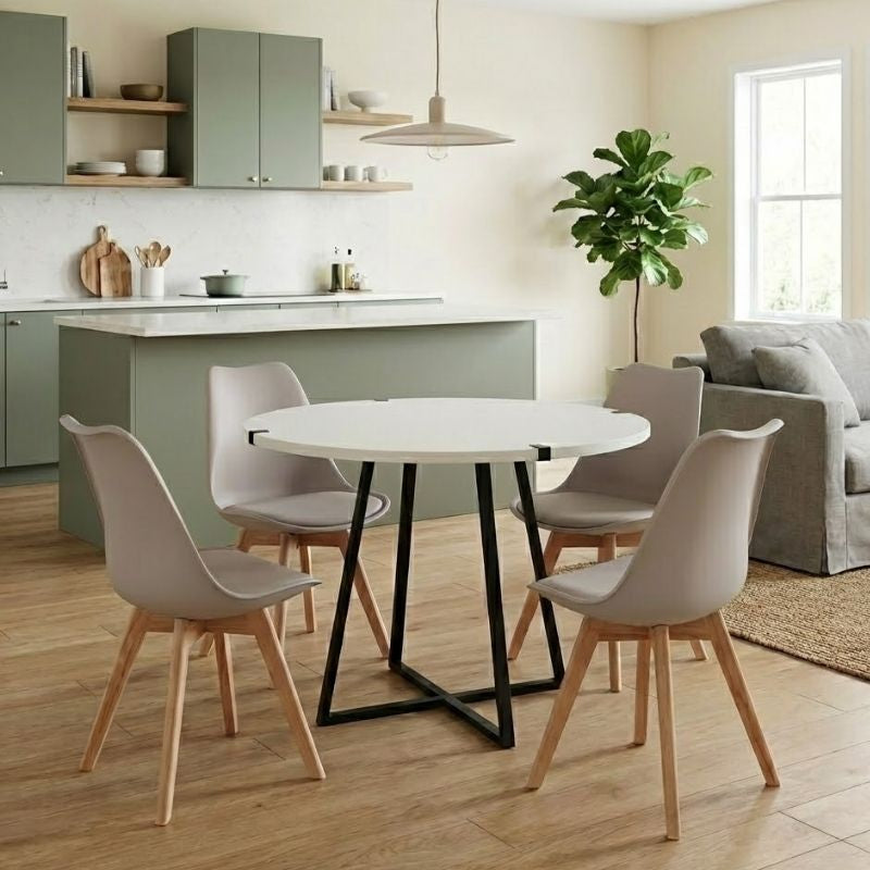 Σετ τραπεζαρία 5τμχ Rubes - Viva χρώμα λευκό - cappuccino Ø100x78εκ.