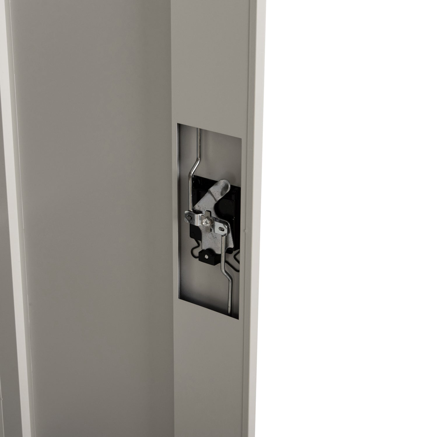 Η DURON είναι μια πρακτικότατη κοντή μεταλλική ντουλάπα με πόδια, που έχει φτιαχτεί με γνώμονα την χωρητικότητα για το μέγεθός της και την ανθεκτικότητα. Είναι δίφυλλη με τις δύο πόρτες να κλείνουν ακριβώς στην μέση της κατασκευής, ενώ το εσωτερικό είναι ένας ενιαίος χώρος χωρίς κάθετα χωρίσματα. Διαθέτει 1 ράφι που δημιουργεί 2 αποθηκευτικούς χώρους. Οι πόρτες διαθέτουν κλειδαριά που κλειδώνει με κλειδί, ενώ το χρώμα της ντουλάπας είναι πολύ ανοιχτό γκρι.