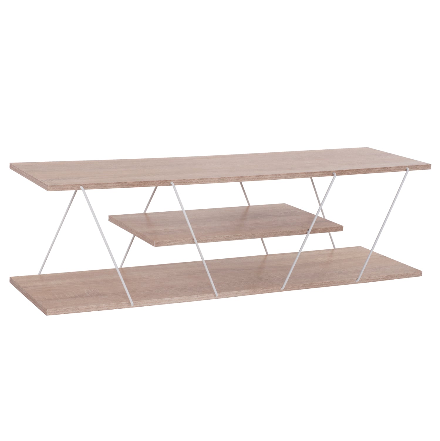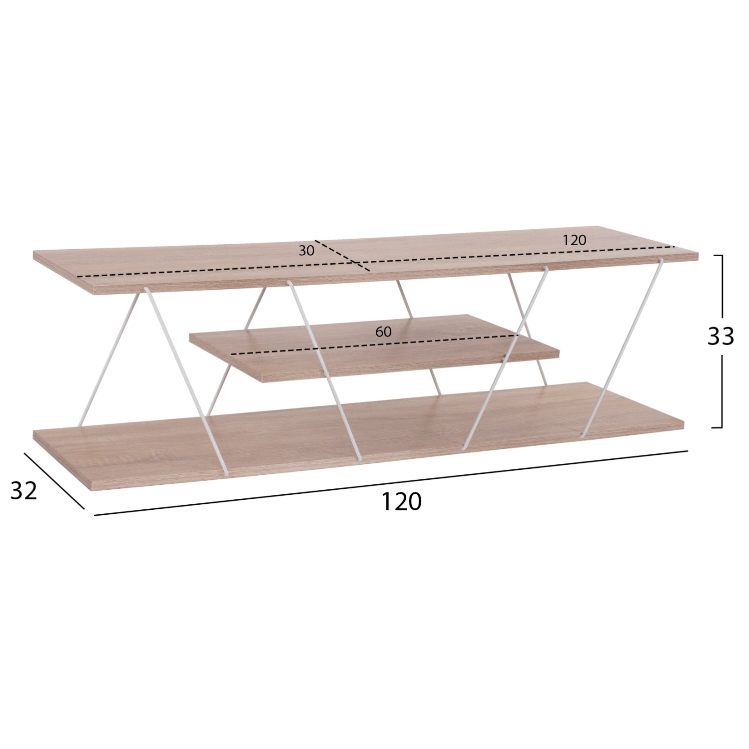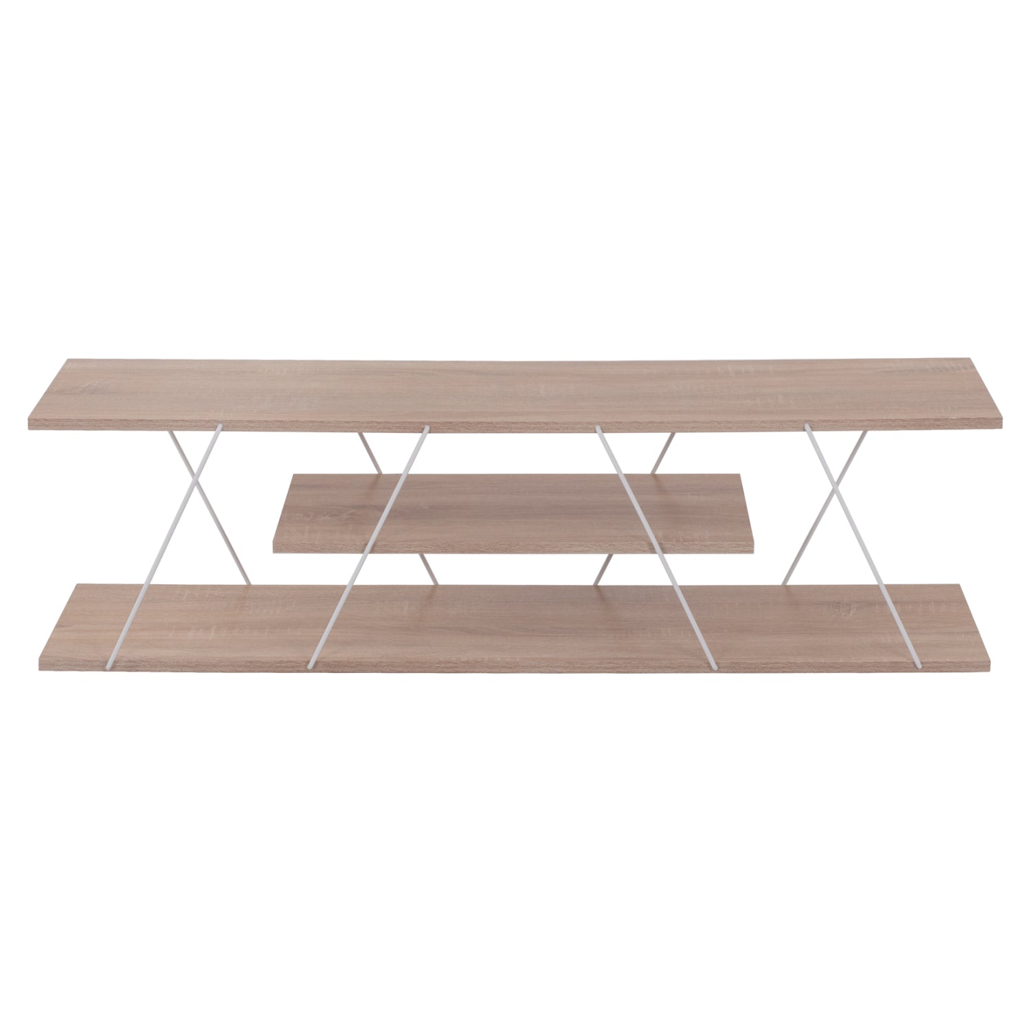 Η σύνθεση TARS θα αλλάξει την όψη στο σαλόνι σας και θα σας προσφέρει την αναβάθμιση που θέλετε. Αποτελείται από έναν συνδυασμό επίπλων για την τηλεόρασή σας με μονάδα δαπέδου και ένα τραπεζάκι σαλονιού. Όλη η σύνθεση είναι της ίδιας σειράς από μελαμίνη σε χρώμα sonama και μεταλλικές ράβδους σε ΛΕΥΚΟ χρώμα.