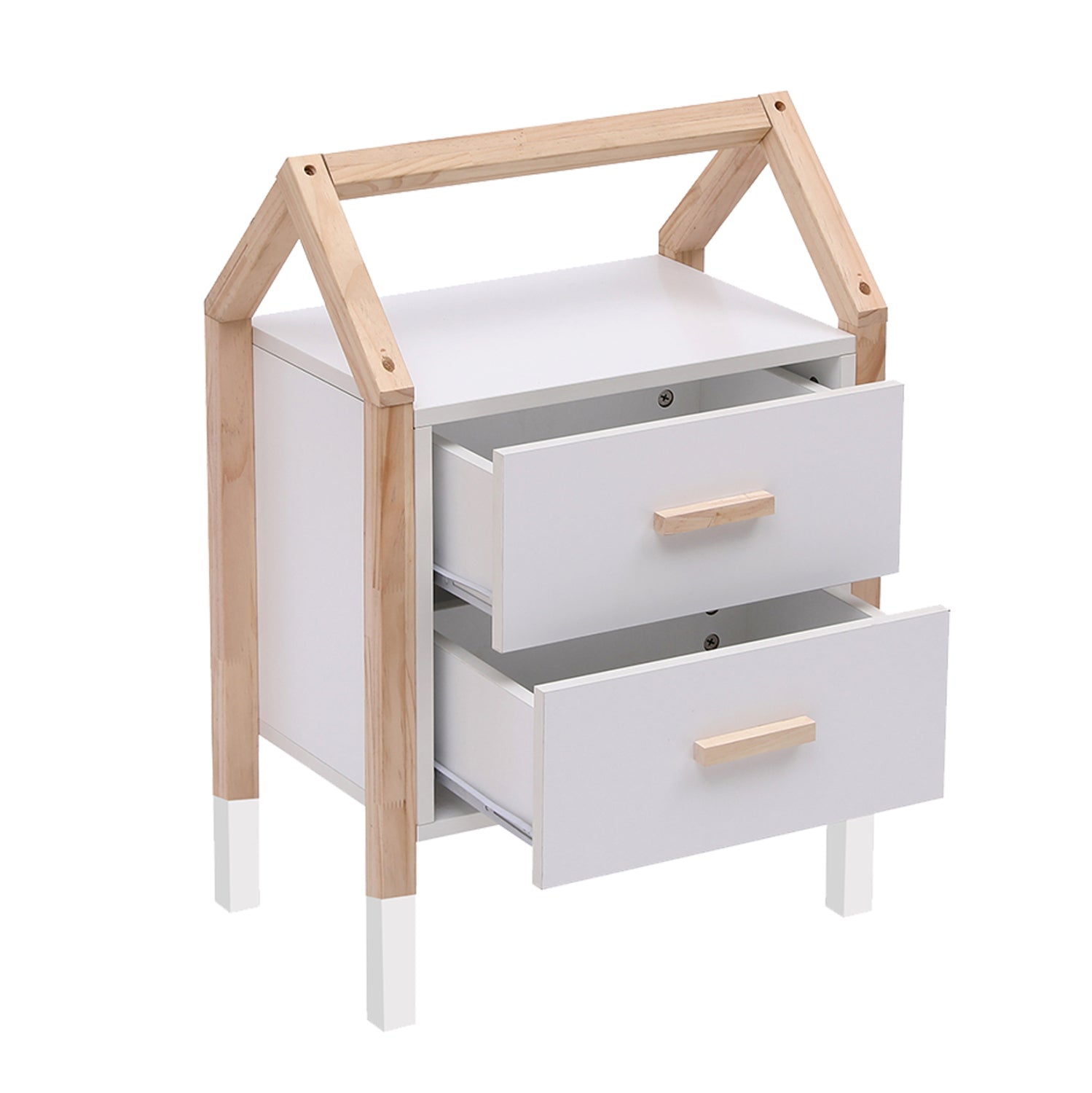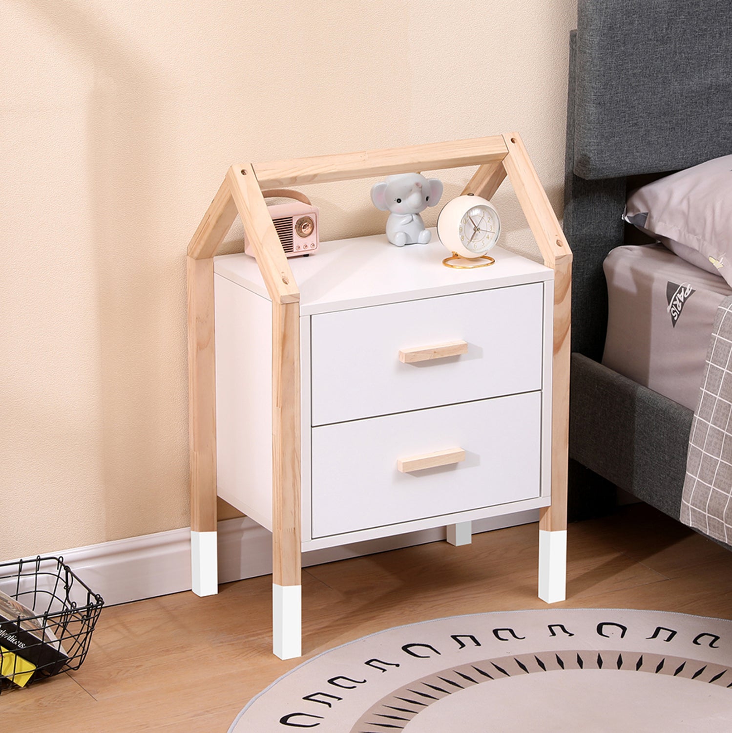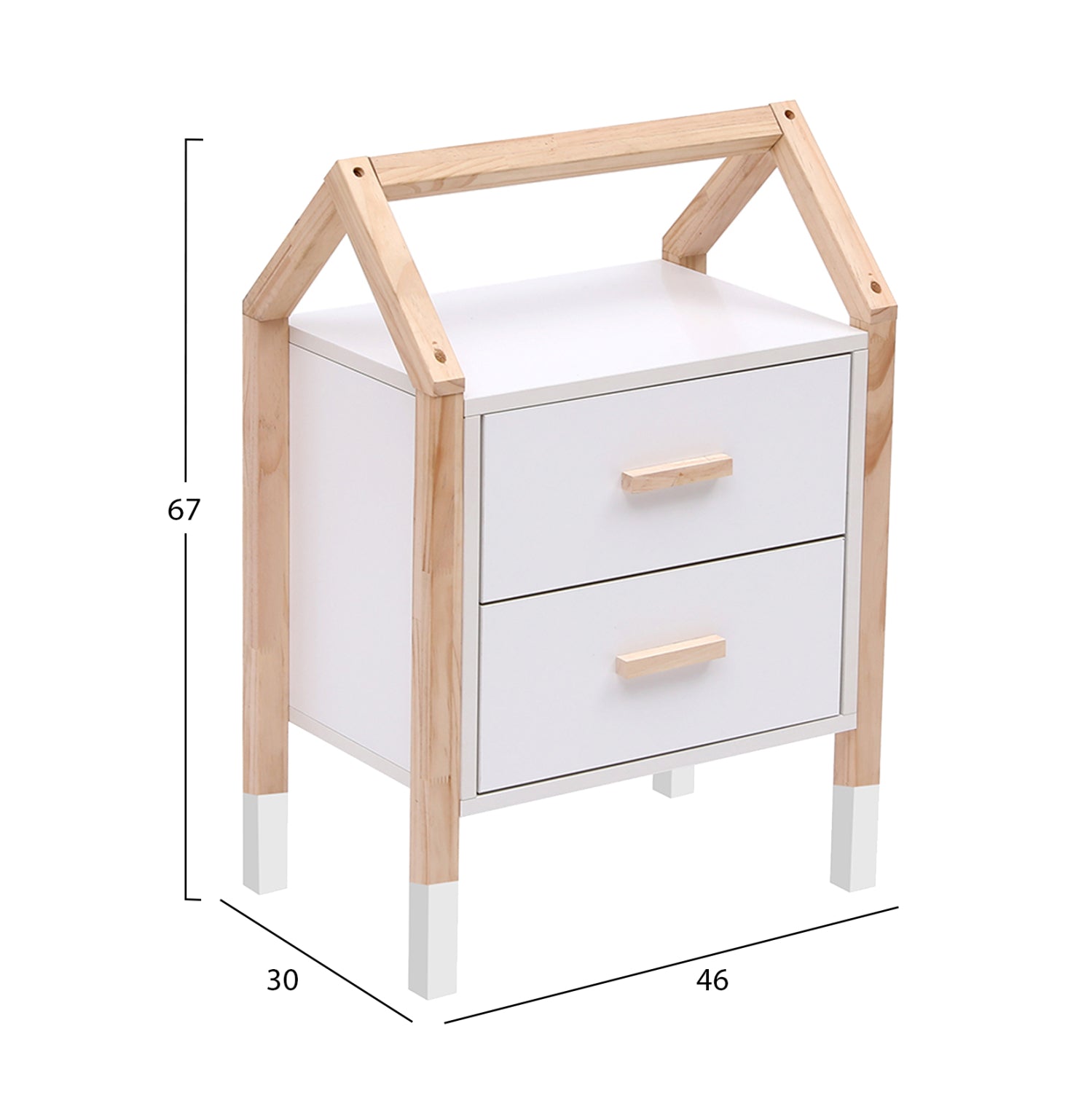 Σας παρουσιάζουμε το καινούργιο παιδικό κομοδίνο PEPE σε ΛΕΥΚΟ χρώμα. Ταιριάζει με ανάλογης αισθητικής κρεβάτια και διαθέτει δύο συρταράκια. Στηρίζεται σε ξύλινο σκελετό σε ΦΥΣΙΚΟ χρώμα ξύλου, σε σχήμα σπιτάκι. Είναι βαμμένο με αβλαβές βερνίκι με βάση το νερό και μη τοξικό, ιδανικό για παιδιά.