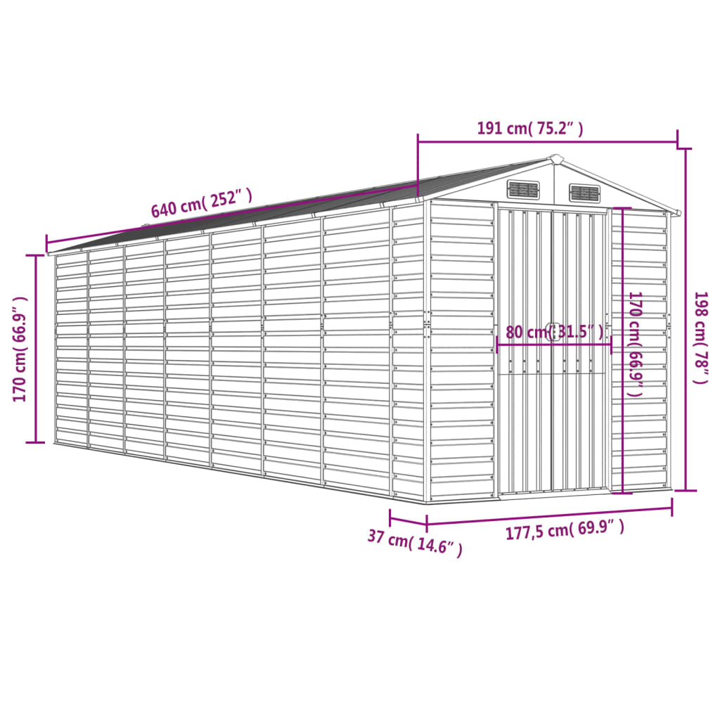 Αποθήκη Κήπου Ανθρακί 191x640x198 εκ. Γαλβανισμένο Ατσάλι